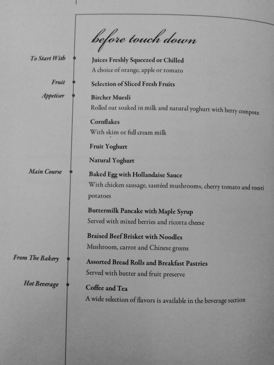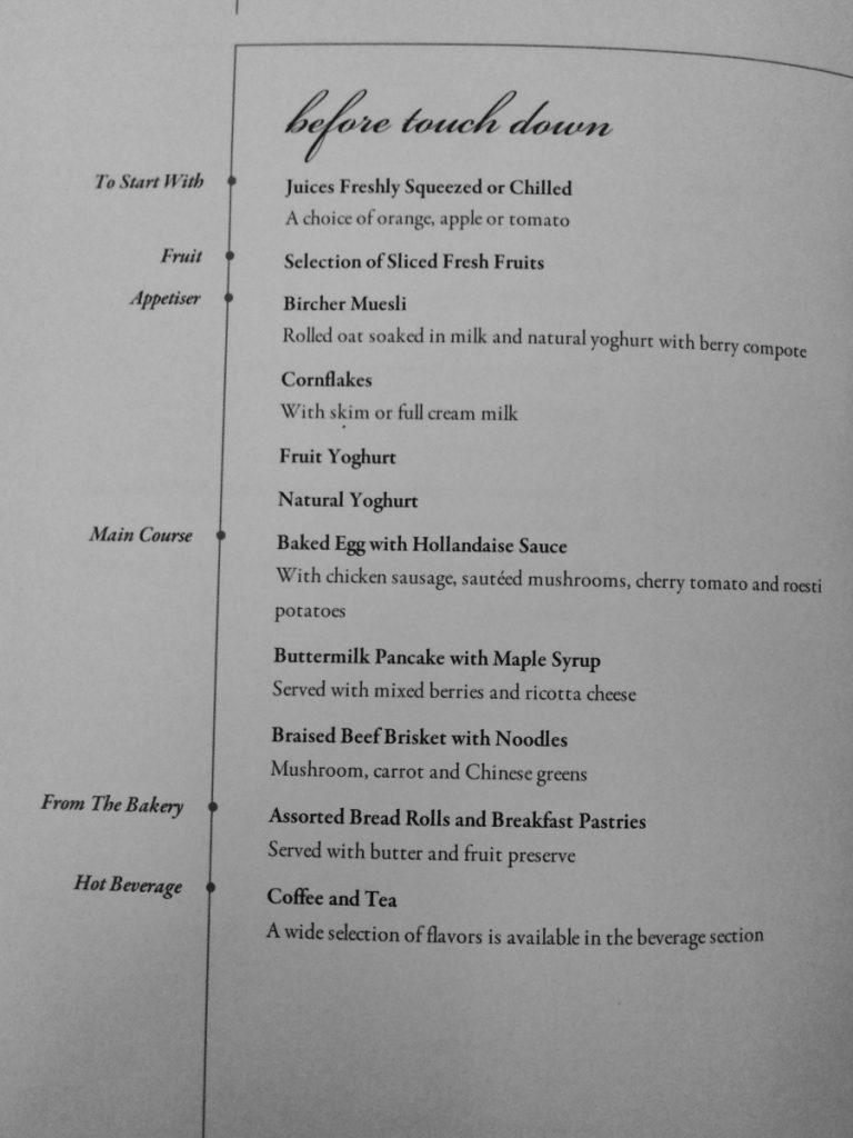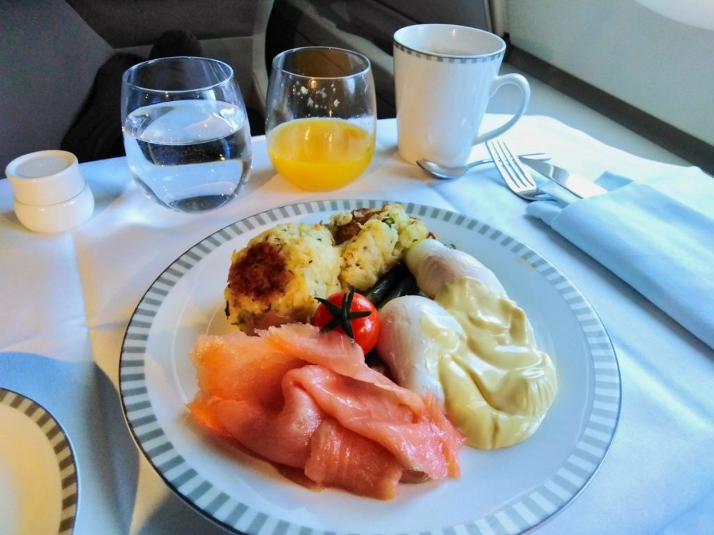 Anderthalb Stunden vor der Landung wurde das Frühstück serviert.