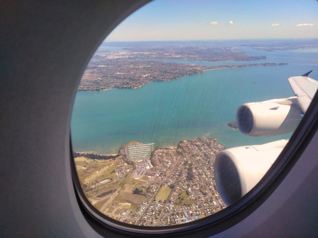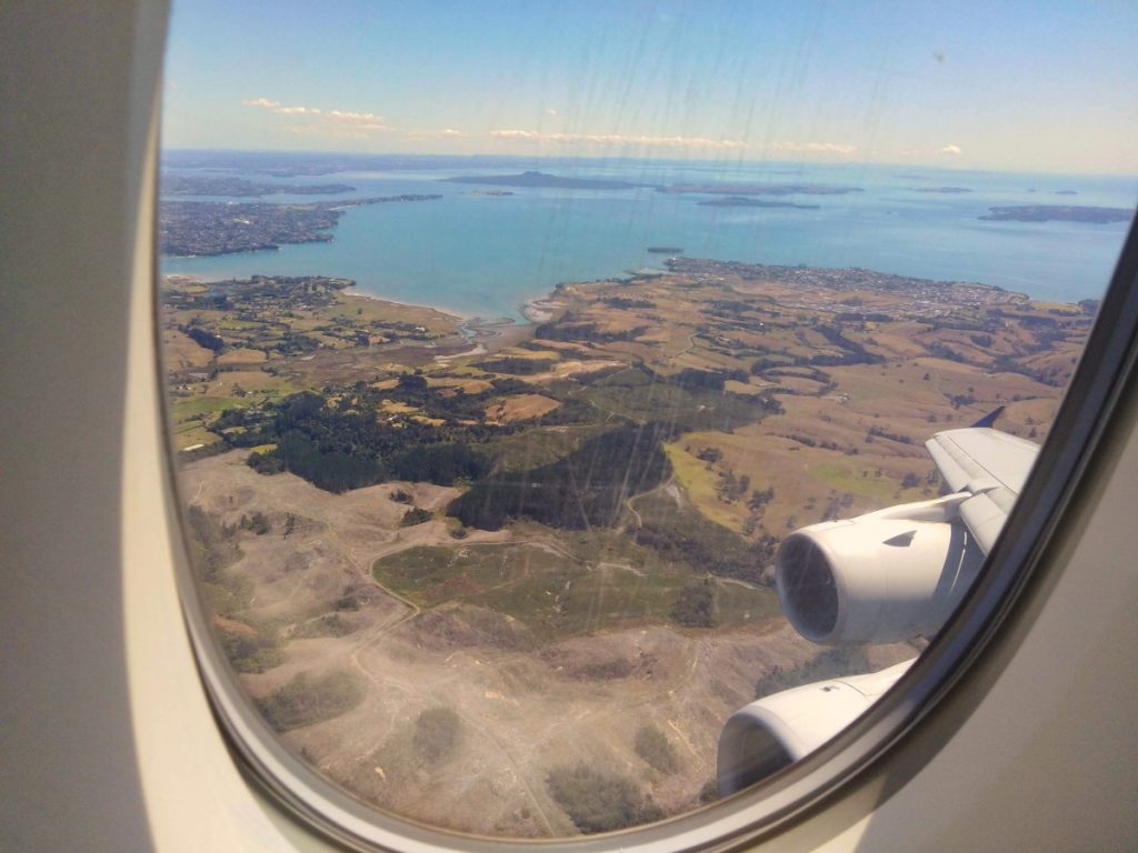 Beim Anflug auf Auckland konnte ich ein paar Fotos schießen. Leider waren die Fenster sehr zerkratzt, sodass die Bilder nicht so gut geworden sind. Aber sie vermitteln einen guten Eindruck von der Aussicht beim Anflug auf Auckland. Ich konnte aus dem Fenster sogar den Skytower im Zentrum von Auckland sehen, auch wenn er auf den Bildern nicht zu erkennen ist.
