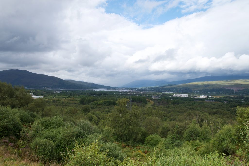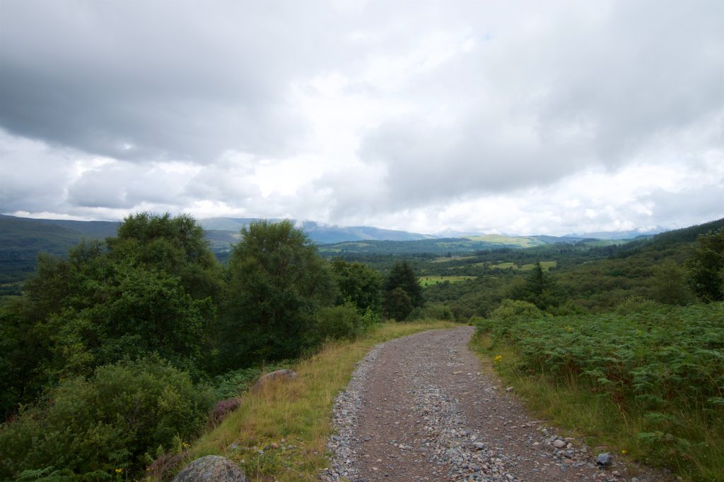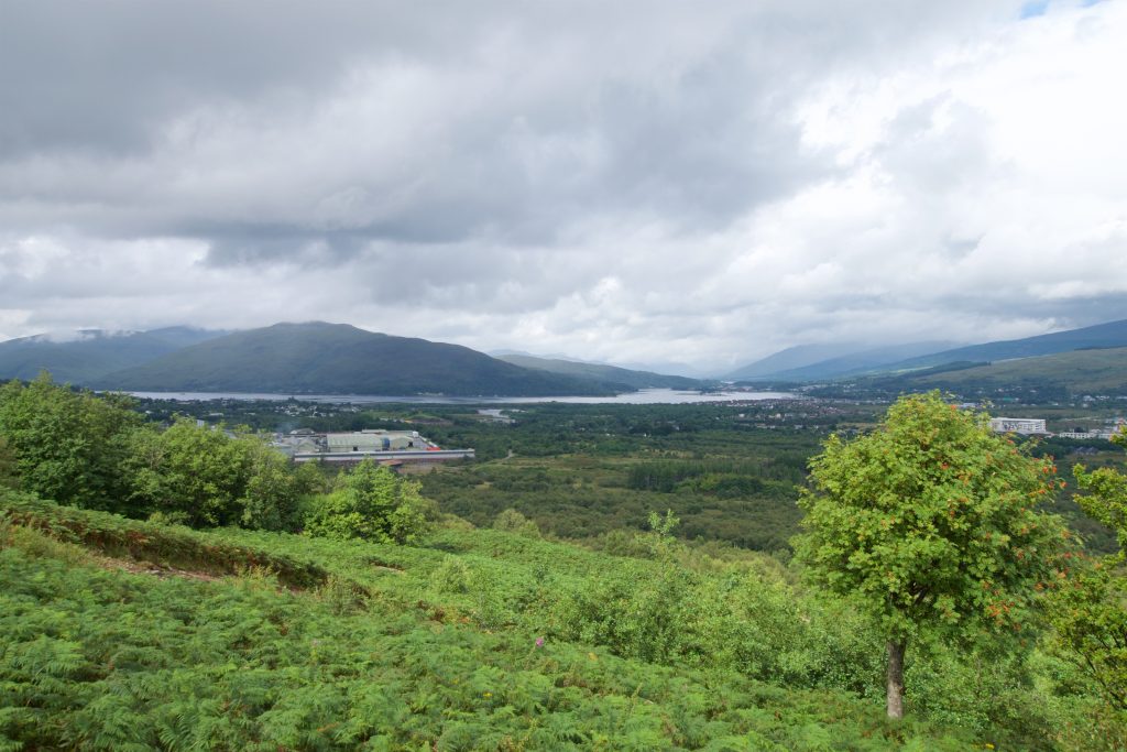 Auf dem Schotterweg kamen wir ganz gut voran – zu gut. Wir verpassten unsere Abzweigung und folgten dem Schotterweg eine ganze Weile bergan, bis uns auffiel, dass wir nicht mehr auf dem richtigen Weg warnen. So hatten wir zumindest noch einen schönen Ausblick zurück auf Fort William und Loch Linnhe.