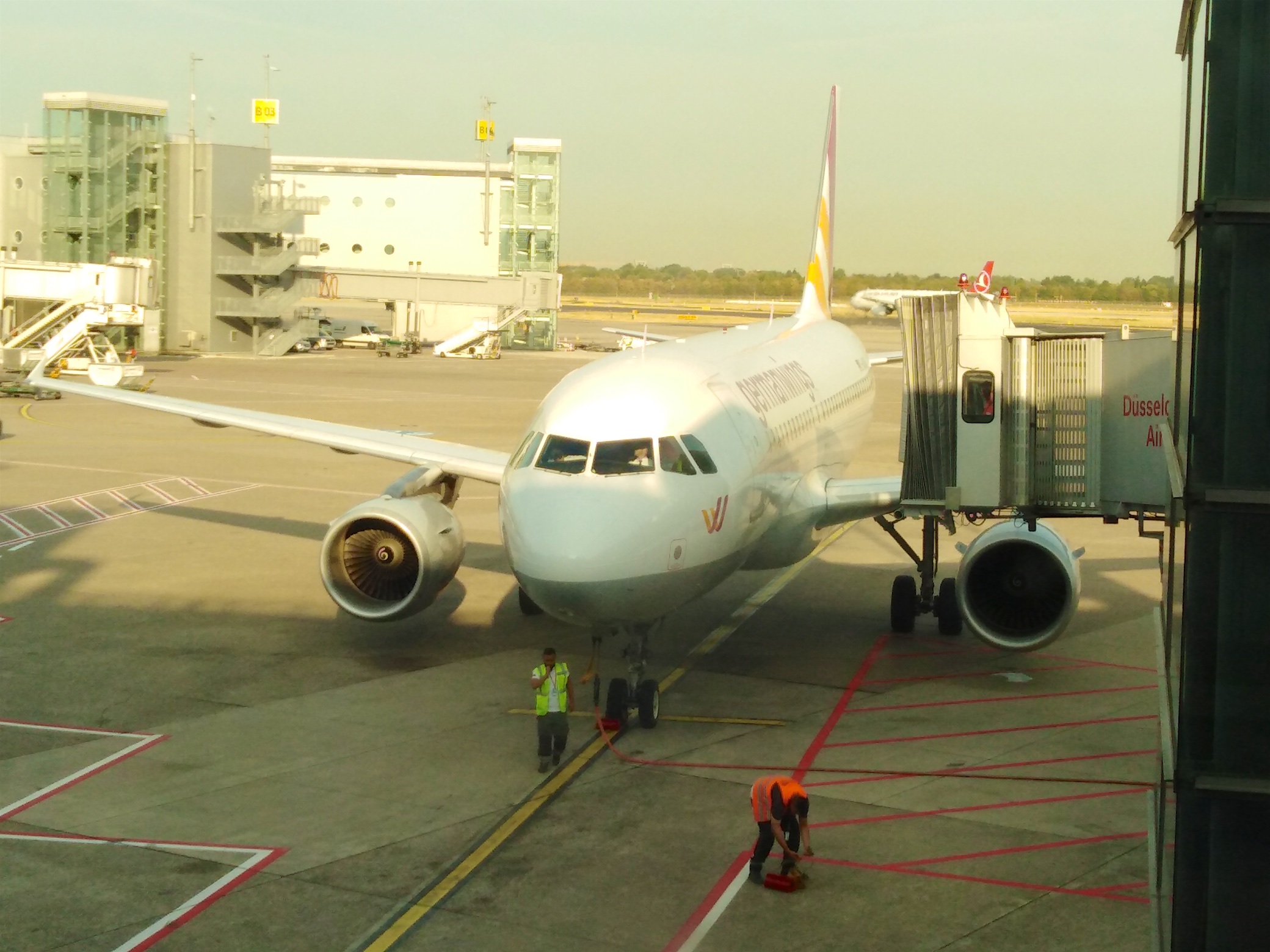 So hatten wir Zeit noch einen Kaffee zu trinken, bevor es durch die Sicherheitskontrolle ging. Am Gate bekamen wir beide einen Anhänger für unseren Rucksack und den Hinweis, dass wir unseren Rucksack beim Einsteigen abgeben müssten und wir ihn beim Aussteigen wieder bekämen. Da ich in meinem Rucksack u.a. meinen Laptop und meine Kamera hatte, habe ich diese Gegenstände schnell aus dem Rucksack aus und soweit es ging in meine Umhängetasche umgepackt. Katharina hat es drauf ankommen lassen. Zu Recht, denn letztlich konnten wir unsere Rucksäcke doch mit in den Flieger nehmen. Im Flugzeug hatten wir dann Glück und der Platz neben mir blieb frei, sodass wir doch nebeneinander sitzen konnten.