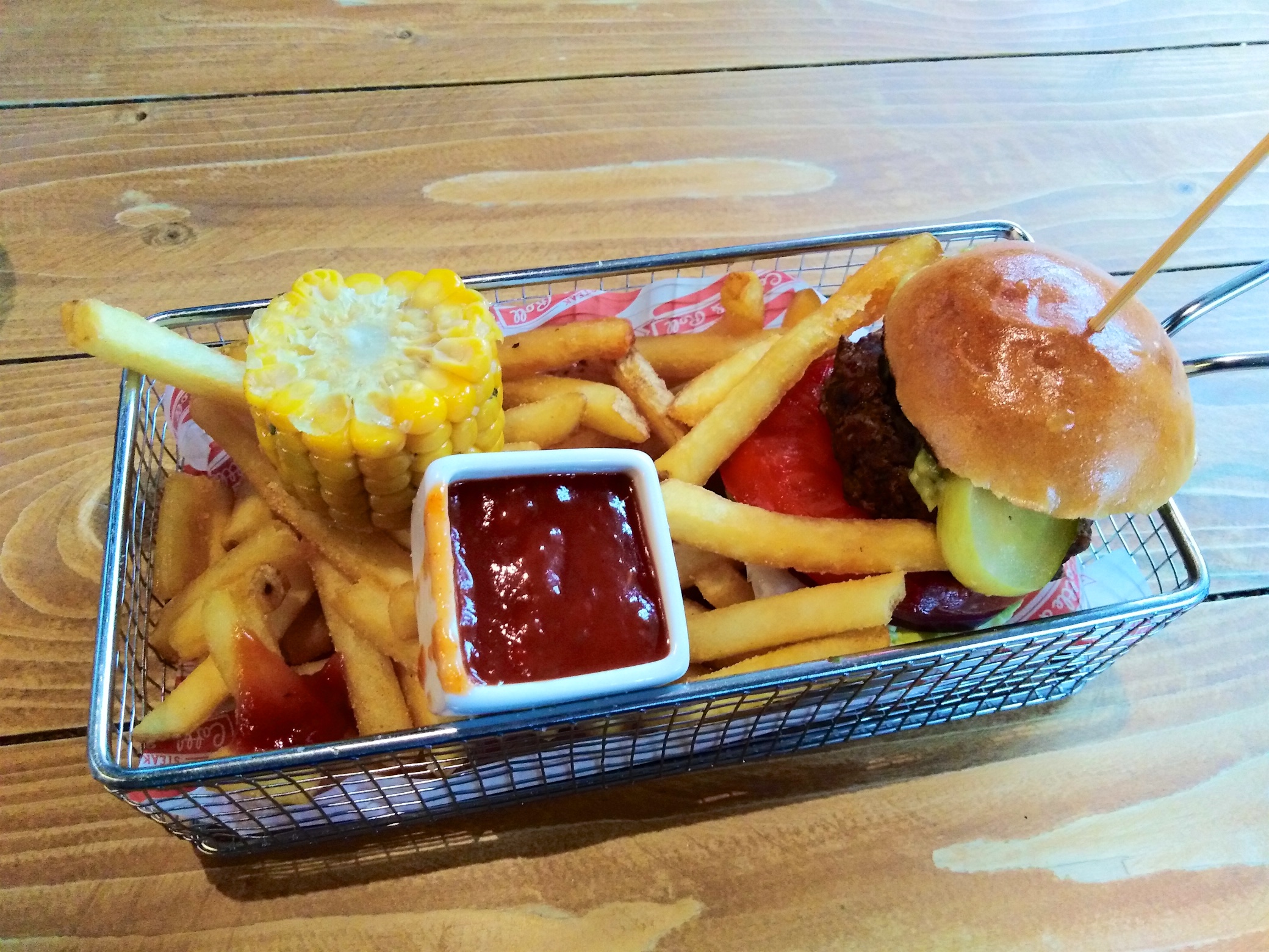 Vom George Square sind wir durch die Merchant City zur Tontine Lane gelaufen. Dort sollte als Teil des Rahmenprogramms schottischer Street Food angeboten werden, aber leider stimmte dies nicht. Also sind wir zum Mittagessen zu Steak, Cattle & Roll gegangen. Dort waren wir schon im letzten Jahr einmal und es gab immer noch das „Mini Munch“-Angebot für 4,50 Pfund. Ein Mini-Burger mit einer kleinen Portion Pommes. Für Zwischendurch genau das Richtige.
