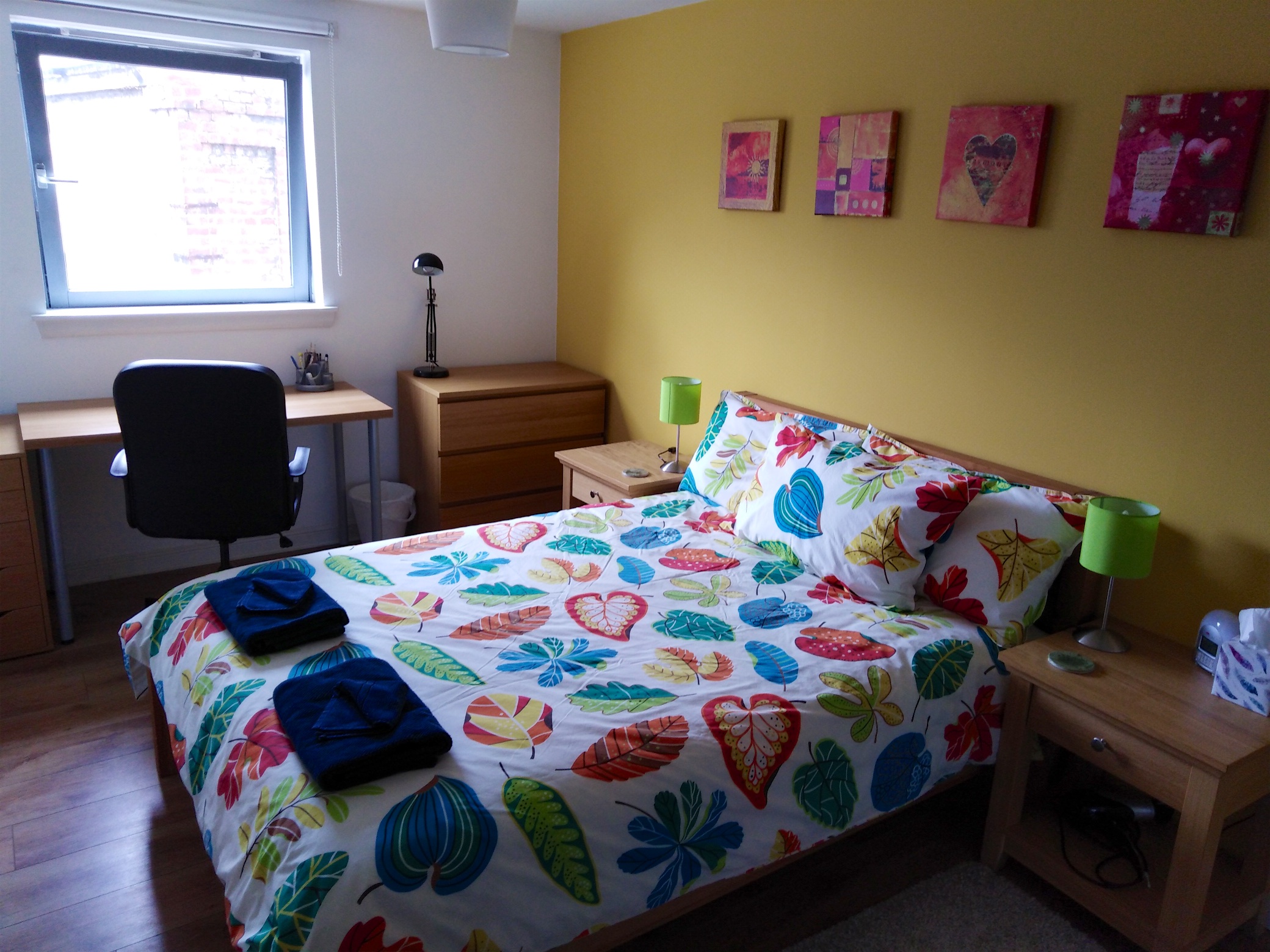 Der Flug nach Glasgow dauerte ca. 2 Stunden und verlief vollkommen reibungslos. In Glasgow war das erste, was uns positiv auffiel, das deutlich kühlere Wetter. Herrlich! Die Einreise war schnell passiert und auch auf unsere Koffer mussten wir nicht warten, sodass wir schon um 11:26 Uhr den Bus Nr. 77 Richtung Innenstadt nehmen konnten. Die Fahrt dauerte ca. 45 Minuten und mir wurde ziemlich schlecht. Aber mit dem Bus mussten wir nicht umsteigen und konnten direkt gegenüber von unserer Unterkunft aussteigen. Die über AirBnB gemietete Wohnung war ein echter Glücksgriff. Sie war groß und sehr schön eingerichtet und hatte alles, was man sich wünschen konnte, einschließlich einer Waschmaschine und einer Spülmaschine.
