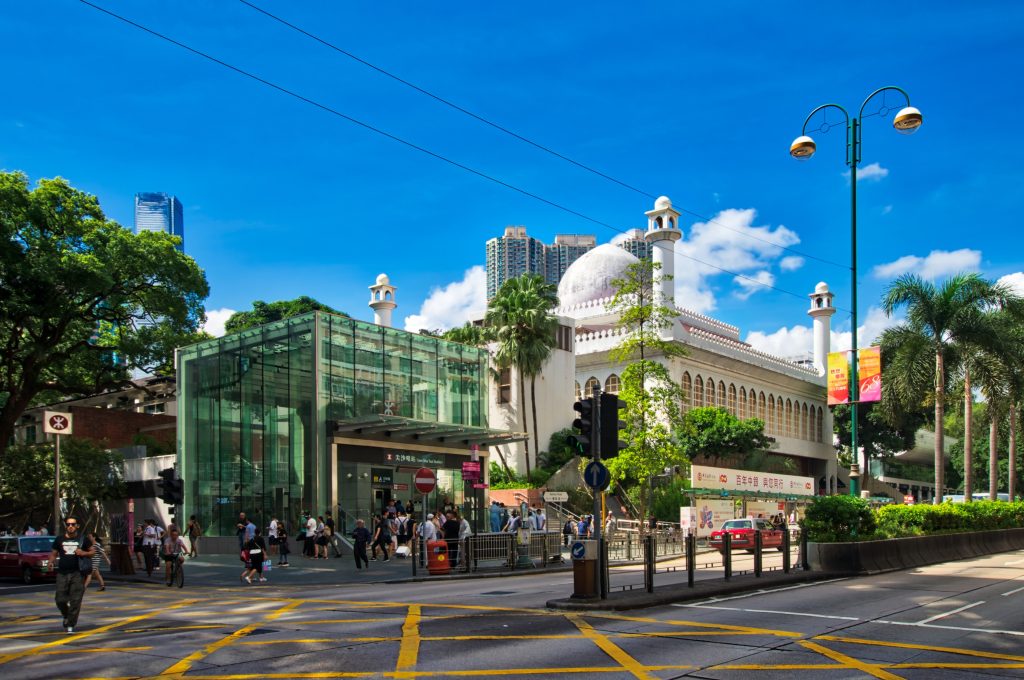 Um kurz vor 14 Uhr habe ich mich dann zu Fuß auf den Weg zum Ritz Carlton Hotel gemacht. Google Maps war der Meinung, dass ich für die Strecke von knapp drei Kilometern ca. 40 Minuten brauchen würde. Das stimmte nicht ganz, aber dazu später mehr. Auf meinem Weg bin ich auch ein Stück über die berühmte Einkaufsstraße Nathan Road gelaufen, vorbei an der Kowloon Mosque.