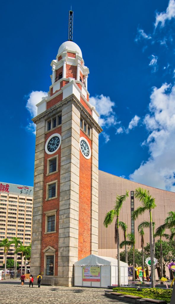 Die erste Sehenswürdigkeit, die mir auf meinem Weg begegnet ist, war noch unmittelbar am Hafen der Clock Tower. Der Uhrenturm ist das einzige, was vom Bahnhof Kowloon der Kowloon-Kanton-Linie noch übrig geblieben ist. Er wurde 1915, ein Jahr vor dem Bahnhof selbst, fertiggestellt. Zunächst hatte der Uhrenturm nur eine Uhr, die zuvor von 1862 bis 1913 im Pedder Street Clock Tower auf Hongkong Island verbaut gewesen war. Erst 1920 wurden auch an den drei anderen Seiten des Turms Uhren angebracht. Als der Bahnhof in Kowloon 1977 abgerissen wurde, beschloss man, den Uhrenturm zu erhalten. Heute wird er vom Hong Kong Space Museum, dem Hong Kong Museum of Art und dem Hong Kong Cultural Centre umgeben, die alle auf dem Gelände des ehemaligen Bahnhofs gebaut wurden.