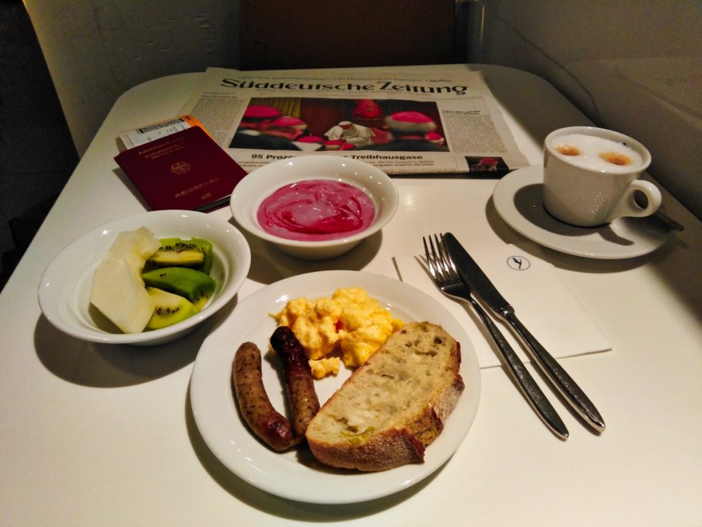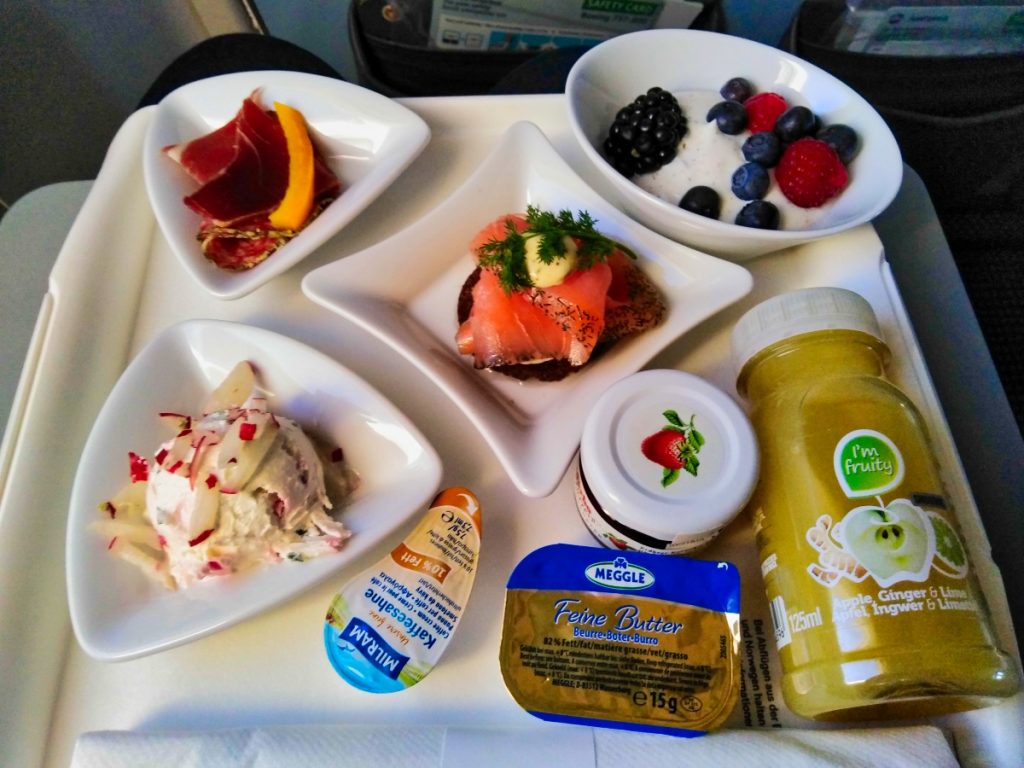 Kurz nach dem Start wurde mir mein Frühstück gebracht – und mein schlechter erster Eindruck war verflogen! Das Frühstück war klein, aber sehr, sehr gut. Damit hatte ich – selbst in der Business Class – auf einem intereuropäischen Flug, insbesondere bei der Lufthansa, nicht gerechnet. Aber SunExpress ist ein JointVenture von Lufthansa und Turkish Airlines und vielleicht hat sich beim Catering das Konzept von Turkish Airlines durchgesetzt.