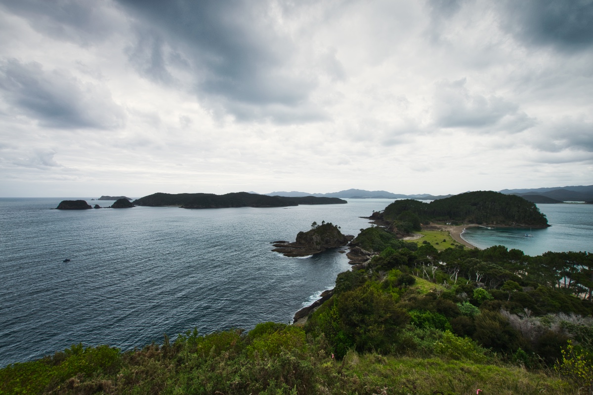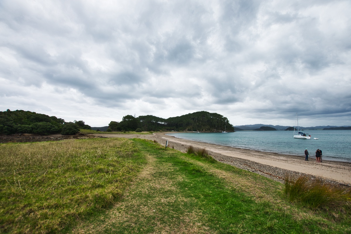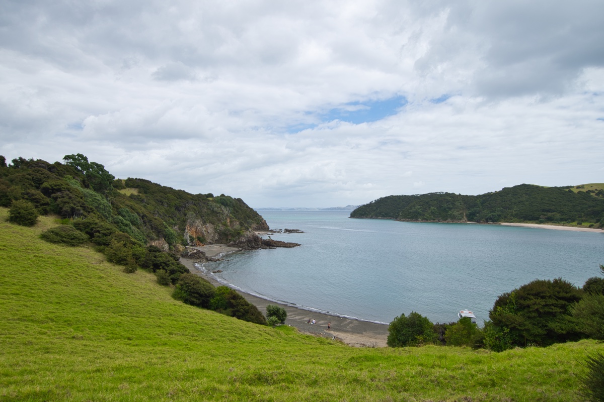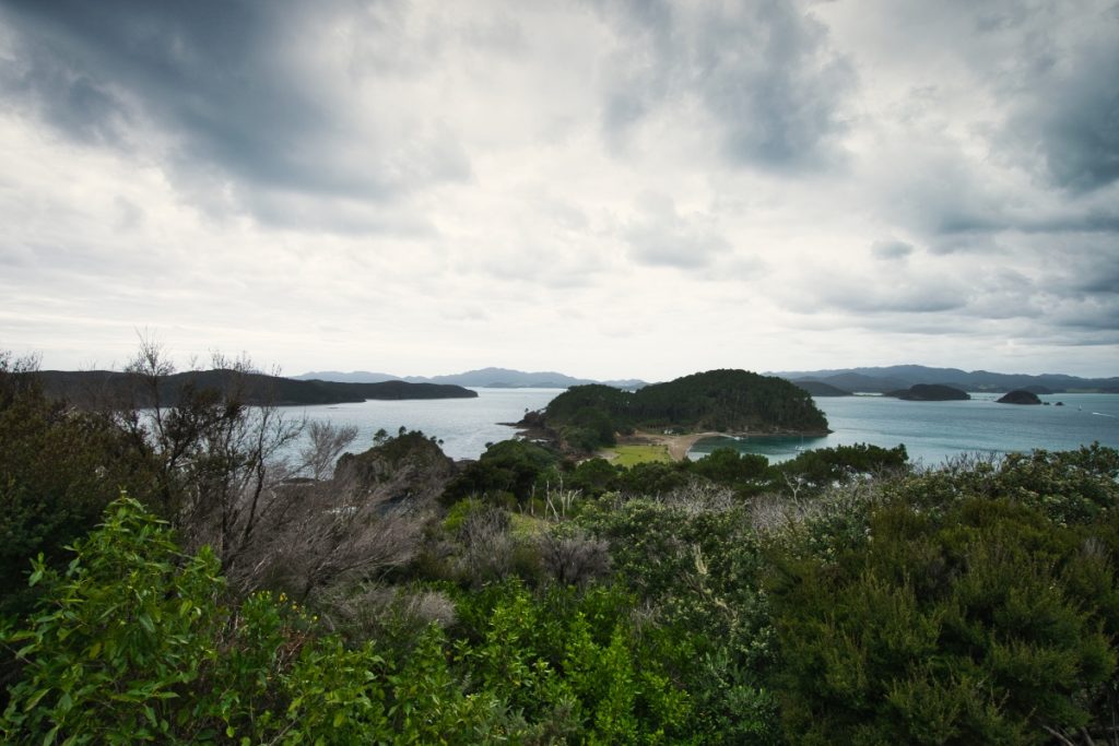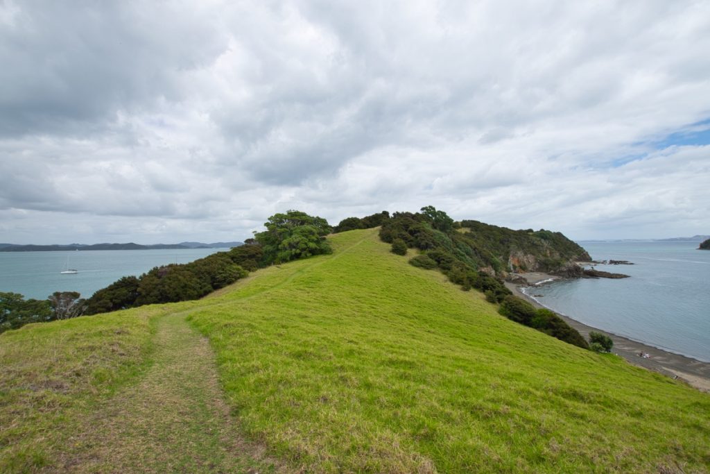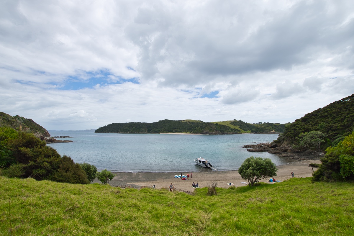 Ich bin zunächst den Hügel hinter dem Strand hinauf gelaufen und habe ein paar Fotos von Urupukapuka gemacht, bevor ich Schnorcheln gegangen bin.