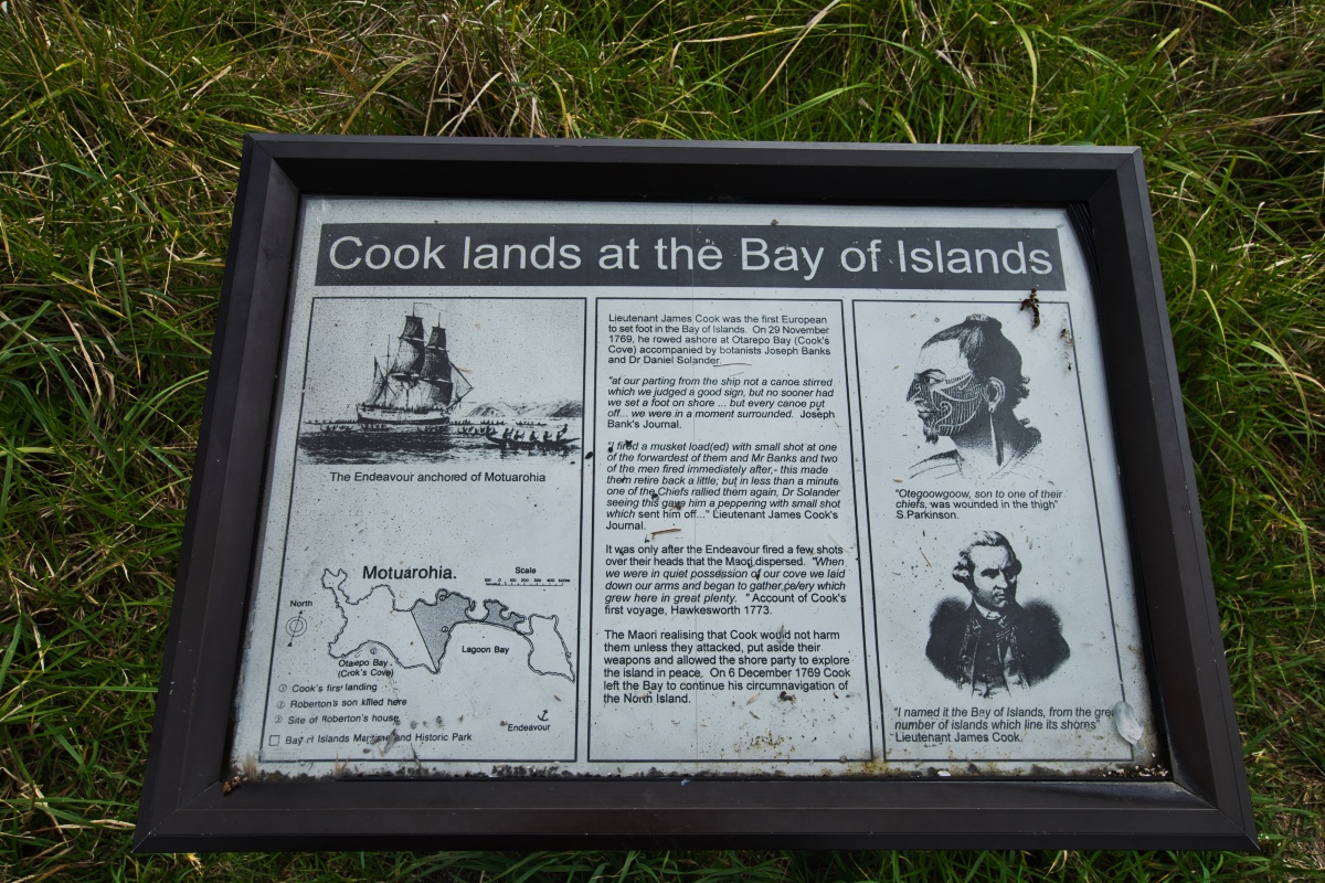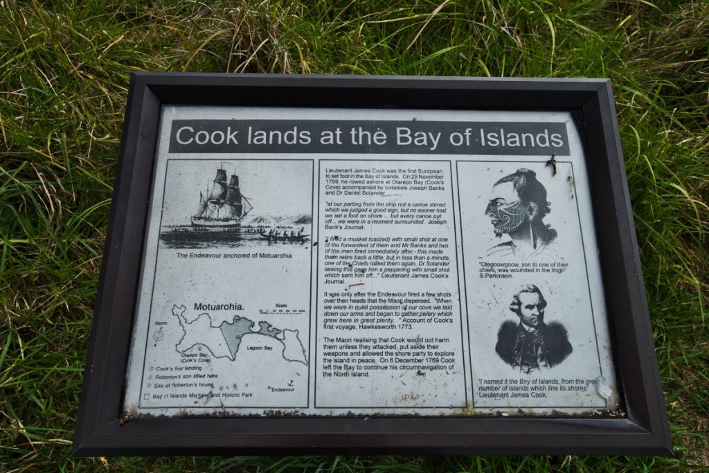 Unser erstes Ziel war Motuarohia Island (auch Roberton Island). Motuarohia wurde 1769 von Kapitän James Cook „entdeckt“, der mit der Endeavour unmittelbar vor ihrer Küste in der heute als Cook’s Bay bekannten Bucht ankerte. Zu der Zeit lebten auf der Insel circa 300 Maori, die den Neuankömmlingen gegenüber zunächst feindselig gesinnt waren. Später gewann Kapitän Cook allerdings ihr Vertrauen und ihm wurde die Gastfreundschaft der Maori zuteil.
