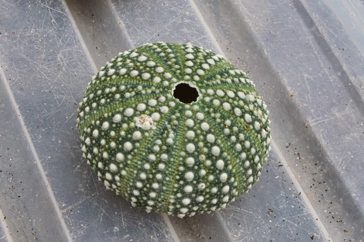 Nach dem Schnorcheln habe ich meinen mitgebrachten Lunch verzehrt und mich mit einigen der anderen Teilnehmer nett unterhalten. Zum krönenden Abschluss unserer Tour hat der Skipper noch ein paar Seeigel aufgebrochen und wir konnten den in Japan für Sushi sehr beliebten essbaren Teil – Uni genannt – probieren. Dabei handelt es sich nicht etwa um Fischrogen, sondern um die Keimdrüsen, in denen der Rogen entsteht. Ekelhaft. Warum Japaner dafür über 100 Euro pro Kilo bezahlen ist mir schleierhaft.