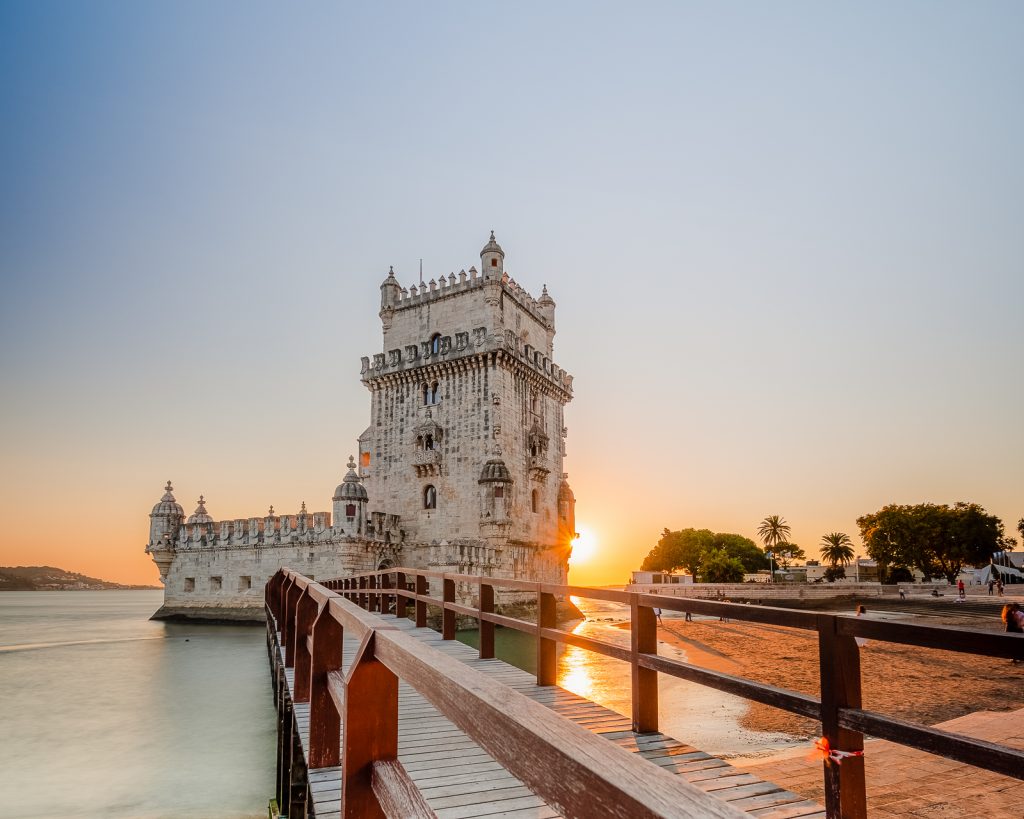Mein eigentliches Ziel an diesem Abend war aber der Torre de Bélem, den ich gerne beim Sonnenuntergang fotografieren wollte. Eine gute Komposition zu finden war nicht ganz einfach, aber am Ende habe ich doch einen Standort für mein Stativ gefunden. Der Turm ist derzeit gesperrt und dementsprechend auch der zum Turm führende Holzsteg, was für meine Zwecke ganz gut war, da so nicht ständig Menschen in mein Bild reingelaufen sind. Mit den Ergebnissen meiner Experimente mit meinen neuen Filtern bin ich noch nicht ganz zufrieden, aber ich muss einfach noch ein bisschen mehr üben.