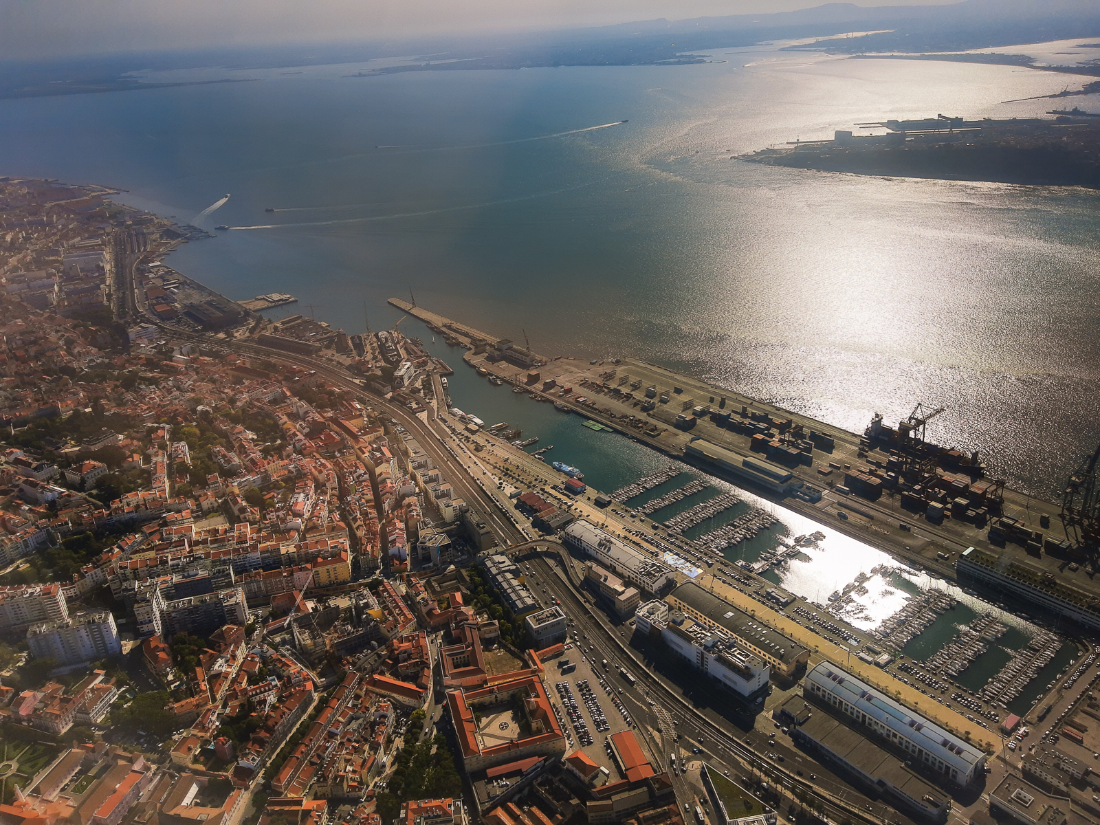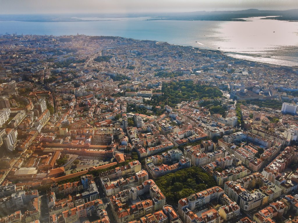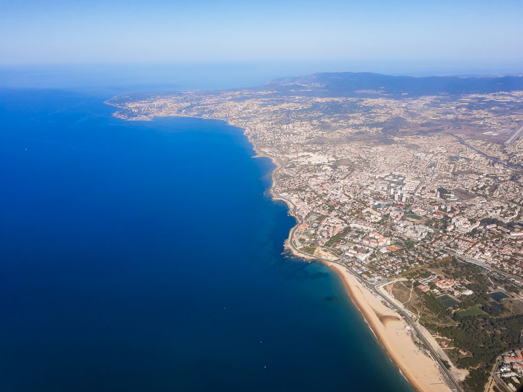 Kurz vor der Landung in Lissabon hatte ich zunächst in der Ferne eine schöne Aussicht auf einen der Paläste in Sintra und dann beim Landeanflug auch noch einen Blick auf die Christo Rei-Statue und die Ponte 25 de Abril, die ein bisschen an die Golden Gate Bridge erinnert. Leider konnte ich beides nicht gut fotografieren – daher hier ein paar andere Bilder vom Landeanflug auf Lissabon (auch diese sind aufgrund der Spiegelungen am Flugzeugfenster allerdings nicht ganz optimal geworden).