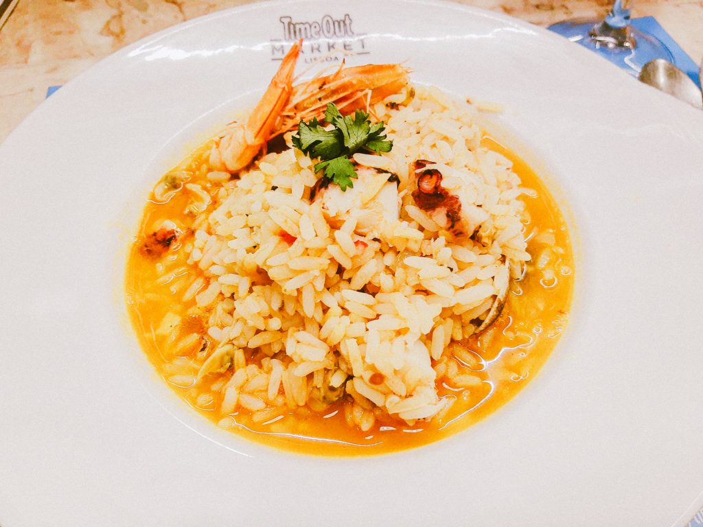 Zum Abschluss des Abends habe ich im Time Out Market nicht nur ein paar typisch portugiesische Kroketten probiert, sondern auch eine sehr leckere Portion Reis mit Meeresfrüchten.