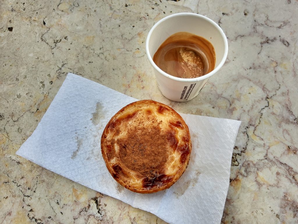 Als nächstes gab es bei A Tendinha do Rossio zwei frittierte Kleinigkeiten, einmal Stockfischkrokette und einmal Spanferkel. Die Stockfischkrokette war sehr lecker, das panierte Spanferkel war hingegen nicht ganz mein Fall. Die Pastel de Nata, die es im Anschluss bei Manteigaria auf der Ria Augusta gab dafür umso mehr.
