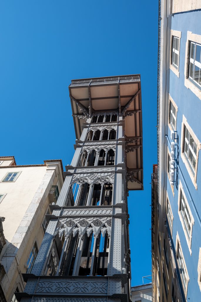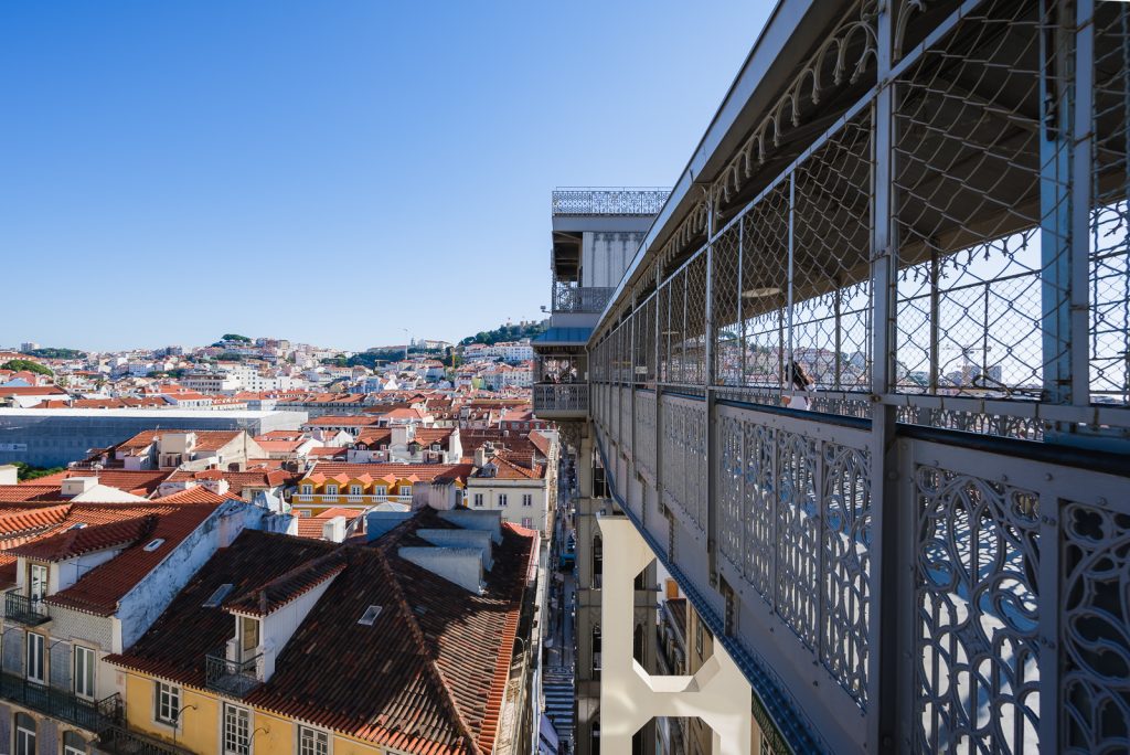Zum Glück war die Schlange an diesem Morgen nicht zu lang und ich musste nur etwa 15 Minuten warten, bis ich – dank meiner Lisbon-Karte ohne erneut zu bezahlen – mit dem Aufzug nach oben fahren konnte. Die Fahrt an sich ist vollkommen unspektakulär, weil man so gut wie keinen Ausblick hat. Der Ausblick von oben ist dafür umso besser.