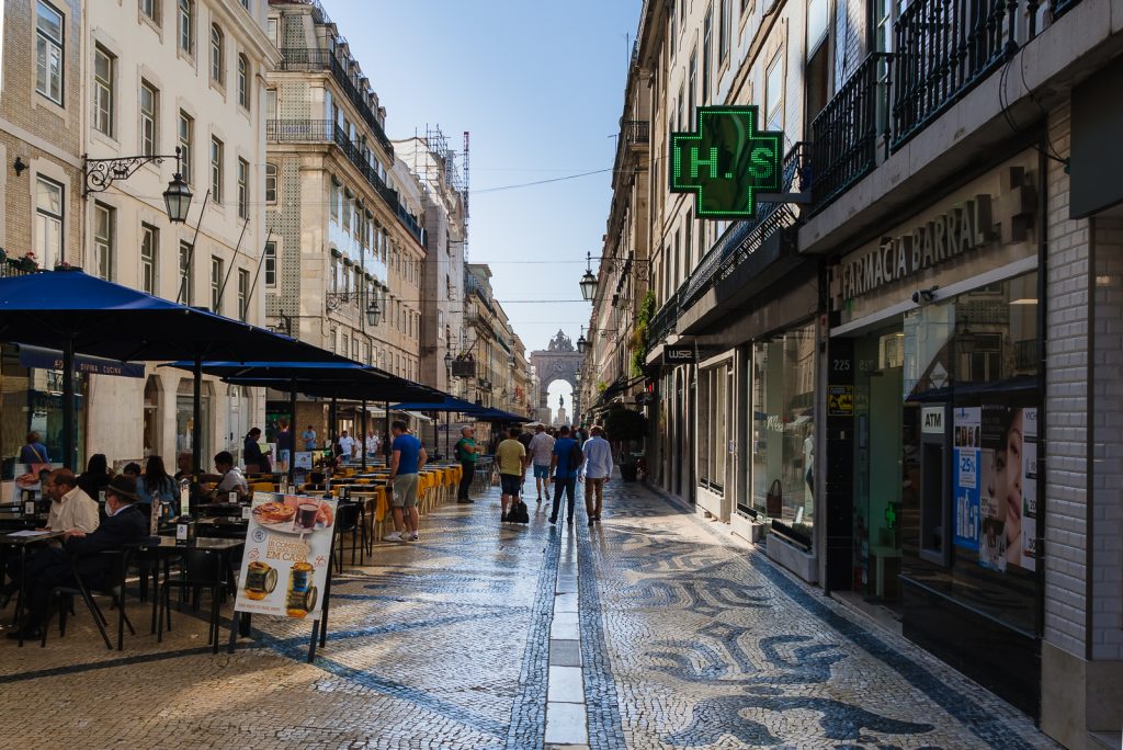 Auf dem Weg zum Praça do Comércio gab es wieder eine Reihe von Häusern zu bestaunen, deren Fassaden mit Azulejos gefliest waren. Ursprünglich sollen die Fassaden nicht deshalb gefliest worden sein, weil es so hübsch aussieht, sondern weil die Farbe, mit der die Fassaden bis dahin gestrichen wurden, den klimatischen Bedingungen nicht gewachsen waren und schnell abblätterten.