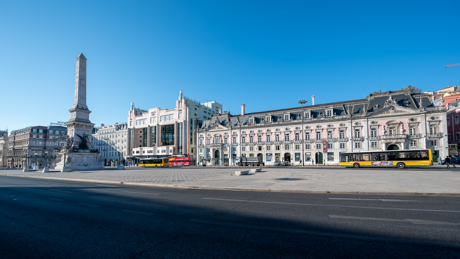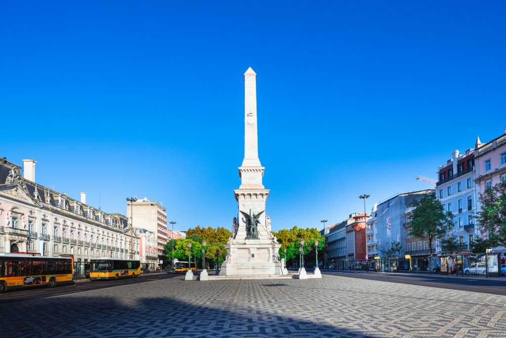 Unten angekommen habe ich zunächst ein paar Bilder am Praça dos Restauradores gemacht und bin dann zum Rossio gelaufen. Auf dem nächsten Bild erkennt man es zwar nicht besonders gut, aber der Praça dos Restauradore ist mit einem komplizierten geometrischen Muster gepflastert.