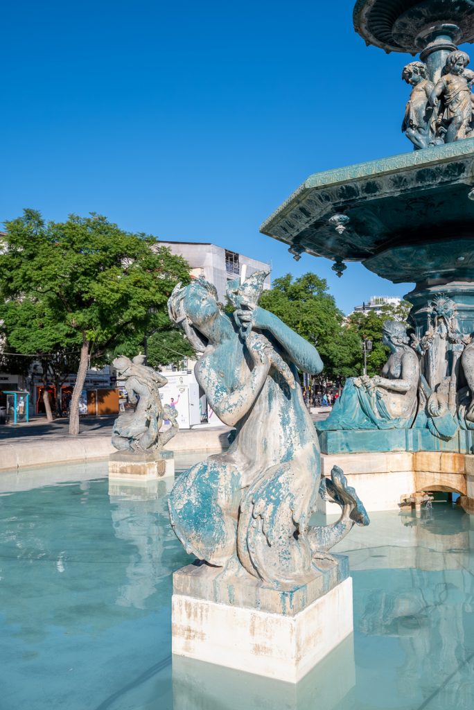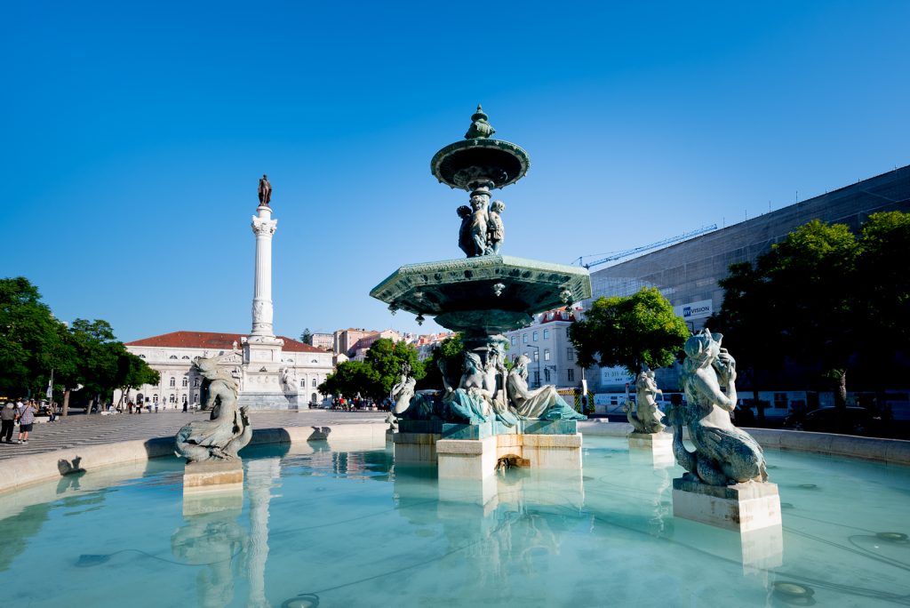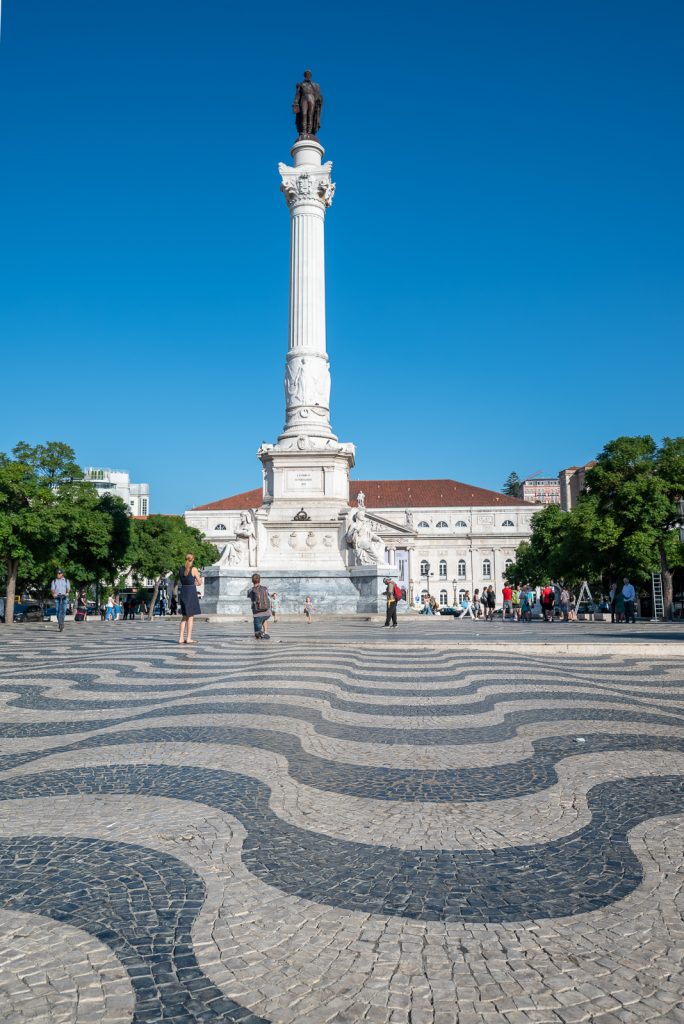 Am Rossio habe ich ein paar Bilder vom Springbrunnen und der Säule mit der Statue von König Pedro IV. von Portugal gemacht, welche dem Platz seinen eigentlichen Namen Praça Dom Pedro IV gibt. Beeindruckend ist am Rossio auch das Pflaster mit Wellenmuster.