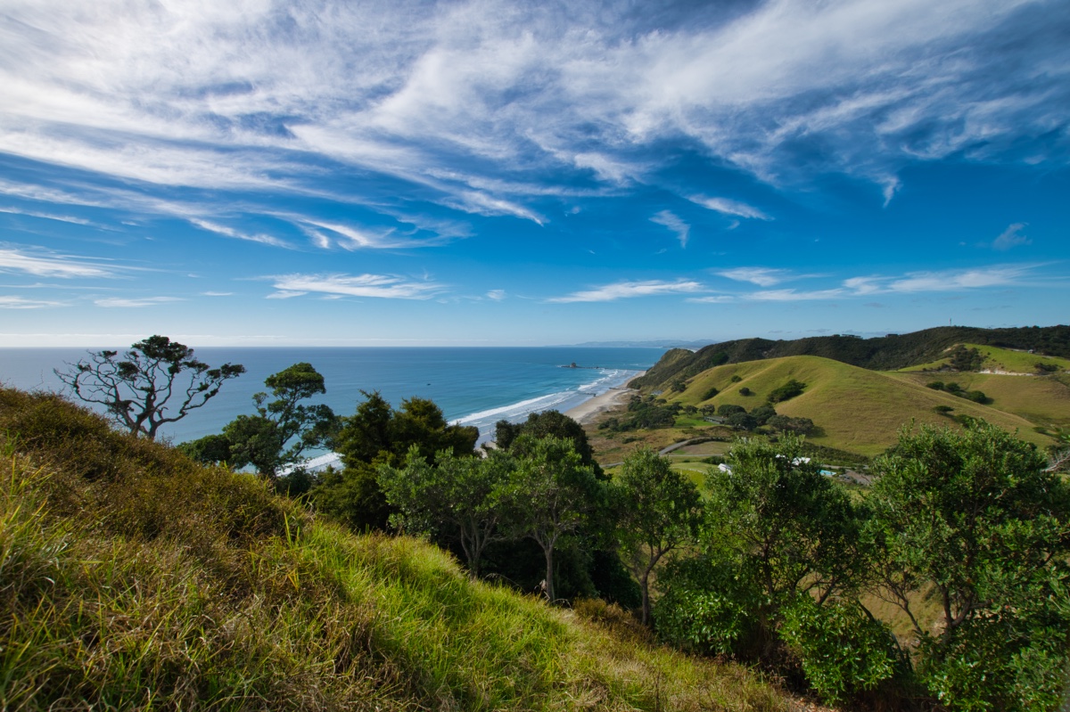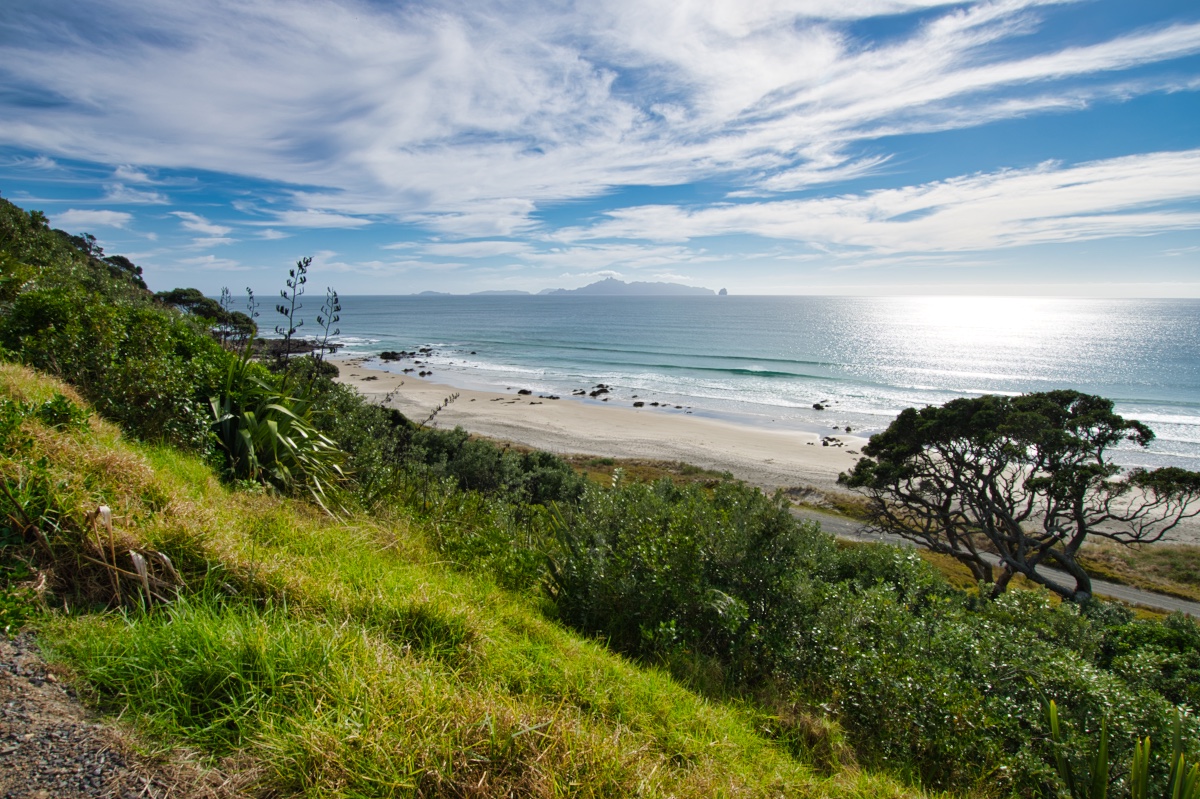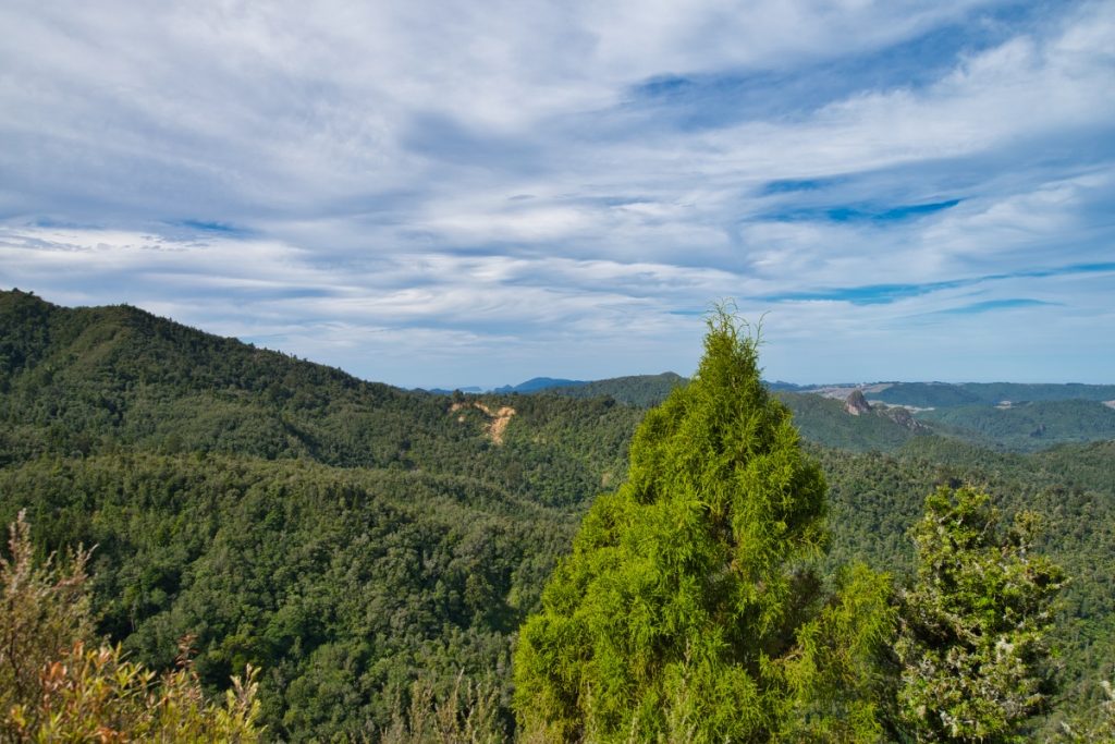 Die Fahrt bis nach Hot Water Beach war im Übrigen ziemlich ereignislos. Nachdem ich den State Highway 1 verlassen hatte, ging es zunächst auf State Highway 2 und dann auf State Highway 25 durch sogenanntes Dairy Country, wie ein entsprechendes Schild am Straßenrand verriet. Hier war das Land flach und die Straße gerade und das Fahren war einfach. Aber nachdem ich den breiten Waihou River überquert hatte, musste ich auf State Highway 25A abbiegen und dieser führte mitten durch den Coromandel Forest Park. Immer schön in engen Kurven um die Berge rum. Teilweise waren die Kurven so eng, dass man nur 25 km/h fahren durfte. Die Strecke durch den Coromandel Forest Park zog sich auch ganz schön. Ich habe zwischendurch noch einmal angehalten, weil ein Schild einen Lookout anpries, aber der Lookout war seinen Namen nicht wirklich wert. Ich habe mich kurz gefragt, ob die Neuseeländer solche Lookouts anlegen, damit die Touristen ihre Fahrt öfter mal unterbrechen (was ja ganz gut wäre im Hinblick auf eine mögliche Übermüdung).