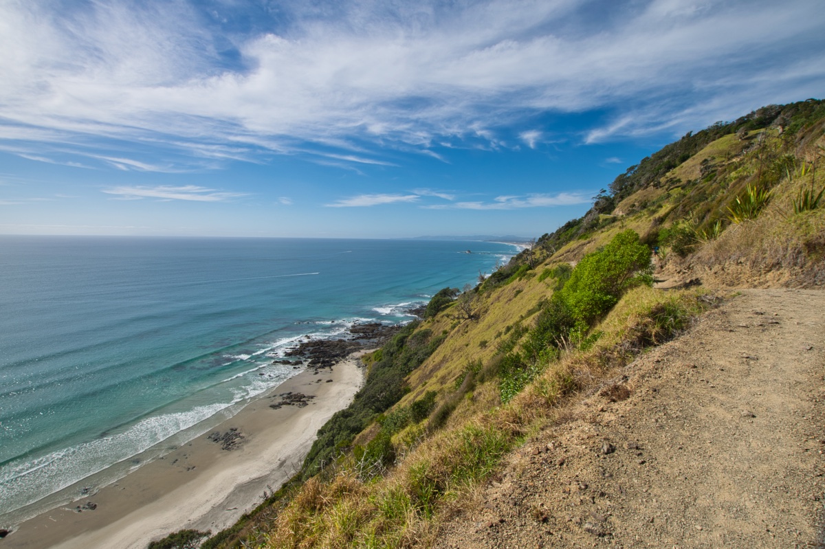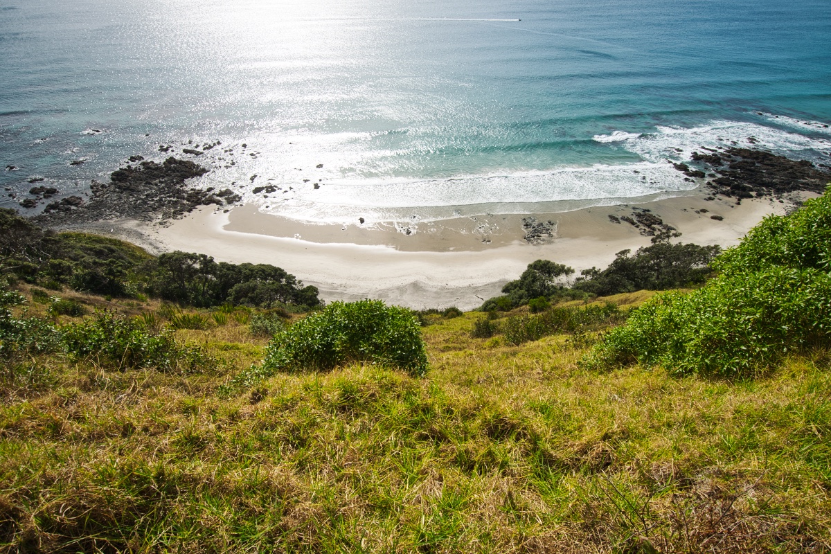 Vom Parkplatz ging es zunächst etwa 15 Minuten über den Strand, bevor der Wanderweg sich vom Strand abwandte und steil anzusteigen begann.