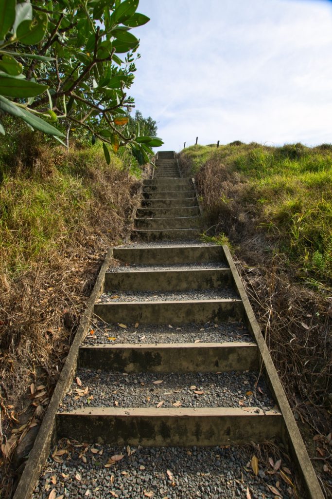 Das erste Stück des Wanderweges war recht anstrengend mit vielen Treppen, über die man langsam die Klippen oberhalb des Strandes erklomm.