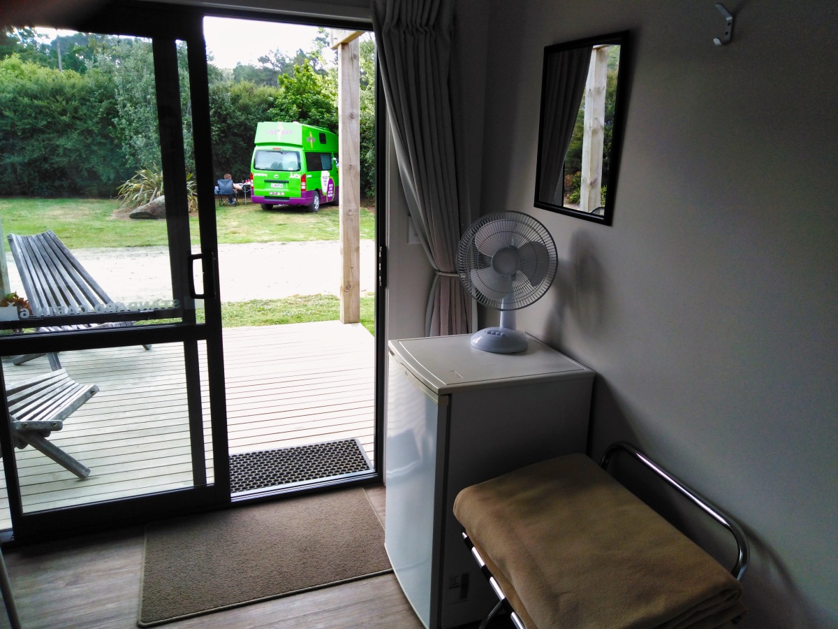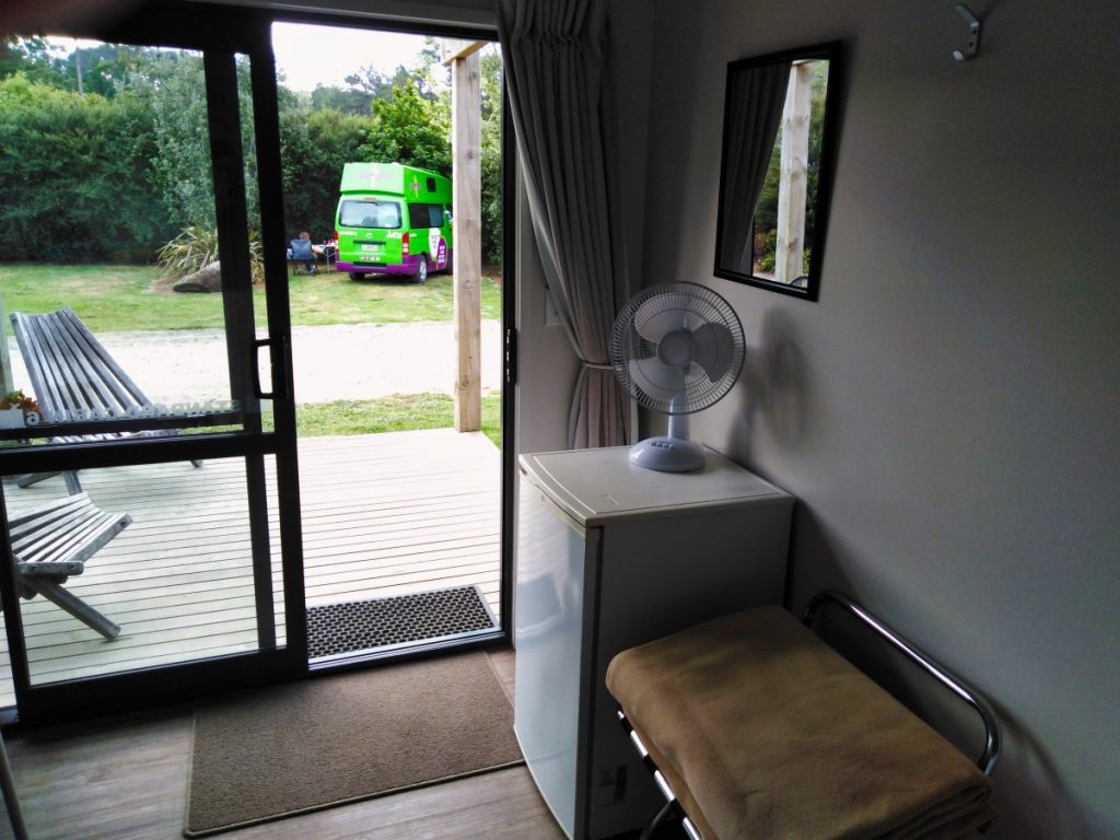Gegen 18 Uhr bin ich dann am Hot Water Beach Top 10 Holiday Park angekommen, wo ich zwei Nächte bleiben werde. Ich habe eine sehr schöne kleine Standard Twin Cabin mit einer eigenen kleinen Terrasse, die gerade abends zum Verweilen einlädt.