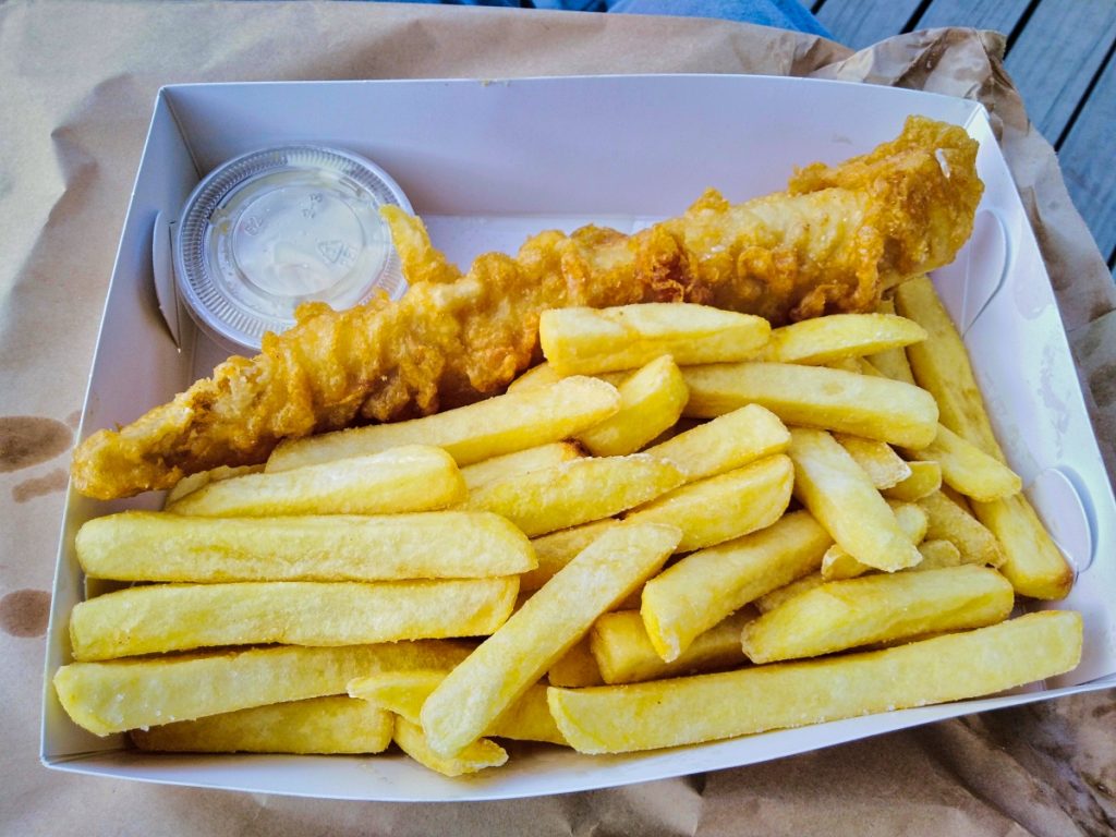 Leider ist die Gemeinschaftsküche hier nicht besonders gut ausgestattet, sodass ich meinen Plan, an diesem Abend selbst zu kochen, schnell wieder verworfen habe. Aber es gibt zum Glück eine Fish & Chips-Bude, bei der die Portion nur 10 NZD kostet. Das kann man sich mal gönnen.