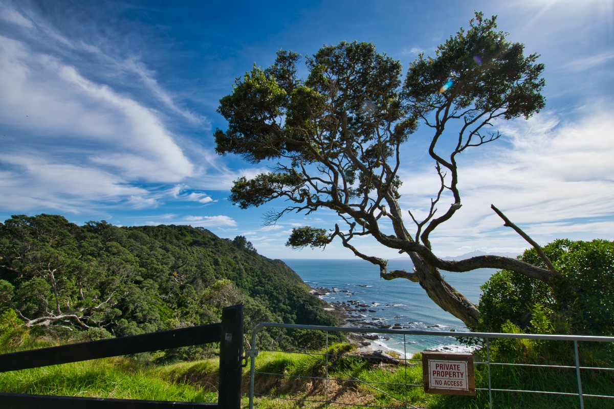 Die Fahrt bis nach Hot Water Beach war im Übrigen ziemlich ereignislos. Nachdem ich den State Highway 1 verlassen hatte, ging es zunächst auf State Highway 2 und dann auf State Highway 25 durch sogenanntes Dairy Country, wie ein entsprechendes Schild am Straßenrand verriet. Hier war das Land flach und die Straße gerade und das Fahren war einfach. Aber nachdem ich den breiten Waihou River überquert hatte, musste ich auf State Highway 25A abbiegen und dieser führte mitten durch den Coromandel Forest Park. Immer schön in engen Kurven um die Berge rum. Teilweise waren die Kurven so eng, dass man nur 25 km/h fahren durfte. Die Strecke durch den Coromandel Forest Park zog sich auch ganz schön. Ich habe zwischendurch noch einmal angehalten, weil ein Schild einen Lookout anpries, aber der Lookout war seinen Namen nicht wirklich wert. Ich habe mich kurz gefragt, ob die Neuseeländer solche Lookouts anlegen, damit die Touristen ihre Fahrt öfter mal unterbrechen (was ja ganz gut wäre im Hinblick auf eine mögliche Übermüdung).
