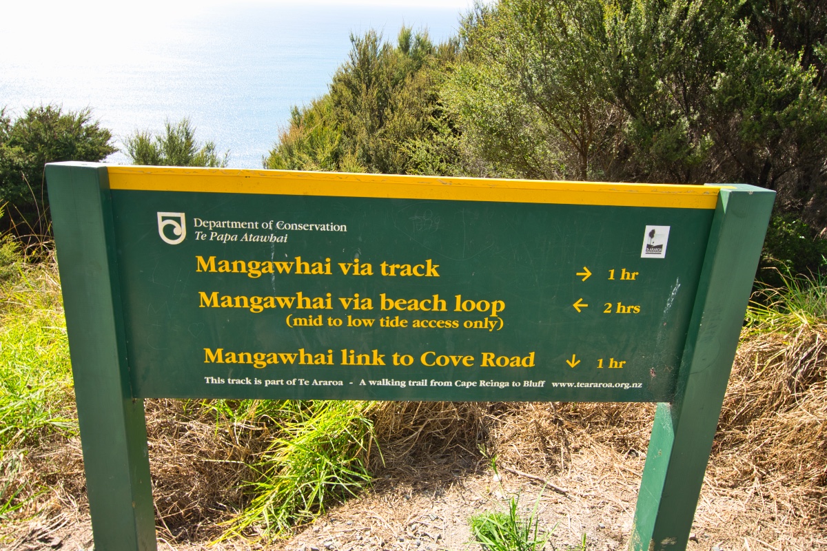 Den Mangawhai Cliffs Walkway kann man auf zwei Arten laufen: entweder man läuft hin und zurück oben auf dem Weg an den Klippen entlang oder man läuft auf dem Rückweg über den Strand zurück. Dies ist allerdings nur bei Ebbe möglich. Da um 13 Uhr Flut sein sollte und es schon etwa 11 Uhr war, als ich mich entscheiden musste, welchen Weg ich nehme, bin ich oben rum auf dem Weg, auf dem ich gekommen war, auch wieder zurück gelaufen. Ich konnte auf dem Rückweg den Strand natürlich sehen und ich denke, ich hätte es auch noch über den Strand geschafft, aber sicher ist sicher.