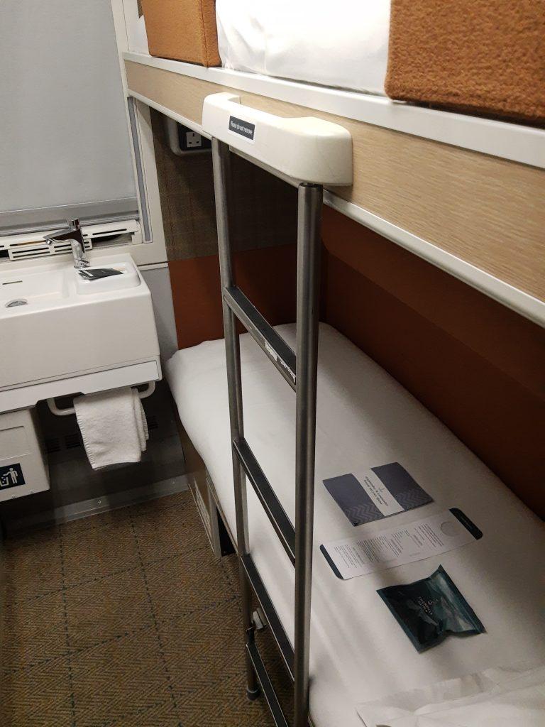 Auf die Minute pünktlich setzte sich der Caledonian Sleeper um 23:50 Uhr in Bewegung. Wir waren noch eine ganze Weile damit beschäftigt, uns in der Mini-Kabine zu organisieren und im Waschbecken ein paar Kleidungsstücke zu waschen, bevor wir total erschöpft in unsere Betten gekrochen sind. Ich hatte das obere Bett, auf dem ich überhaupt nicht aufrecht sitzen konnte und das Bett war auch extrem schmal, gerade einmal 63cm, wie ich beim Man in Seat 61 nachgelesen habe.