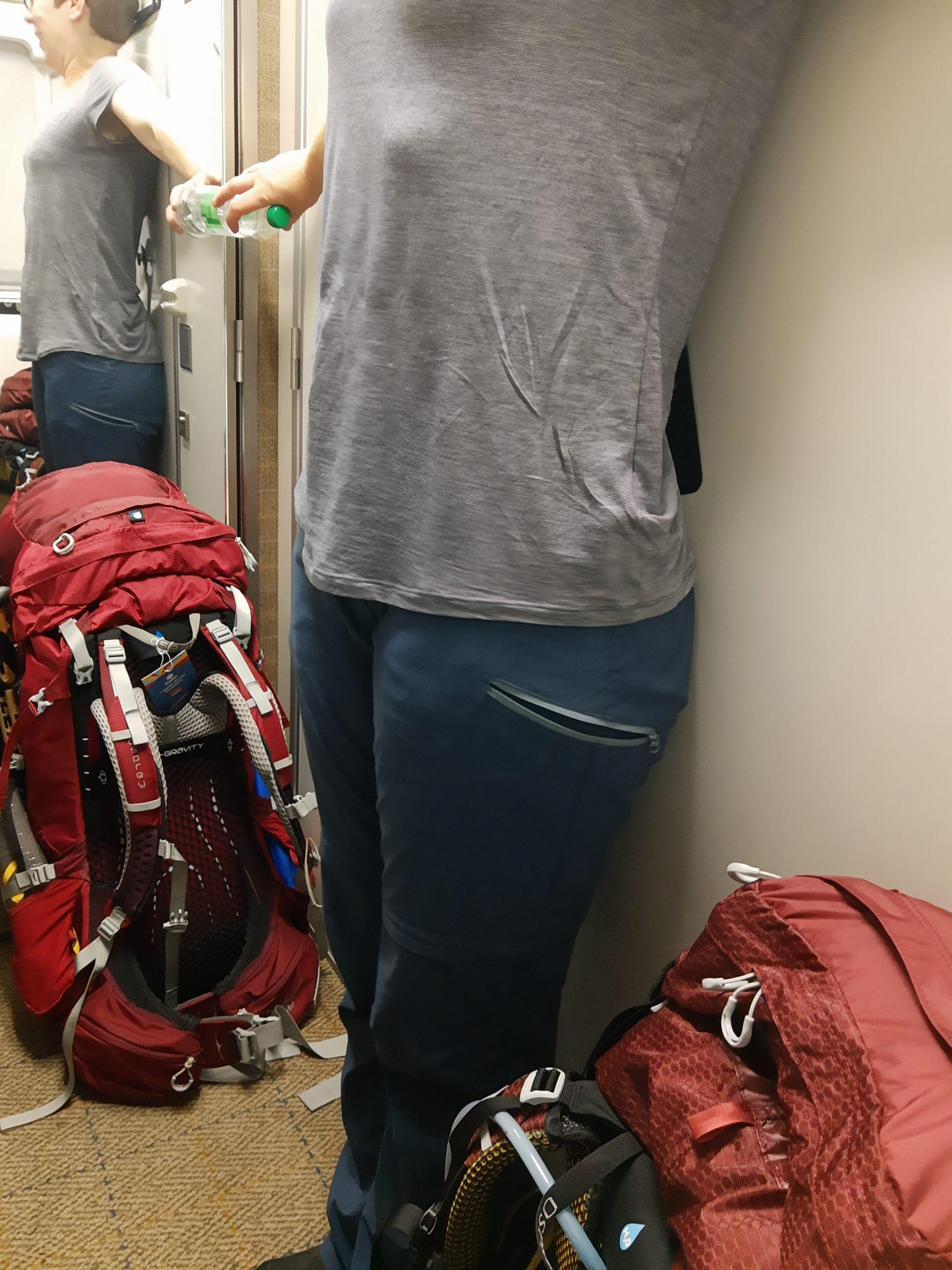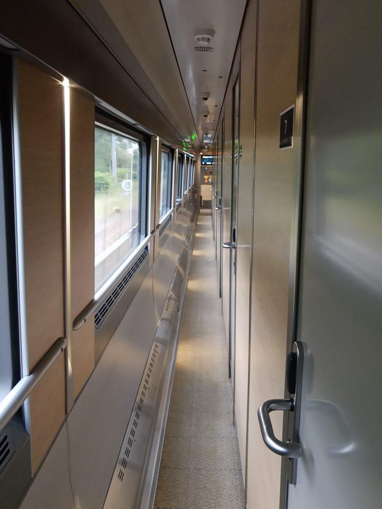 Direkt nach dem Betreten des Zuges fiel uns auf, wie schmal der Gang vor den Kabinen war. Wir mussten uns mit unseren großen Rucksäcken schon fast durchquetschen.