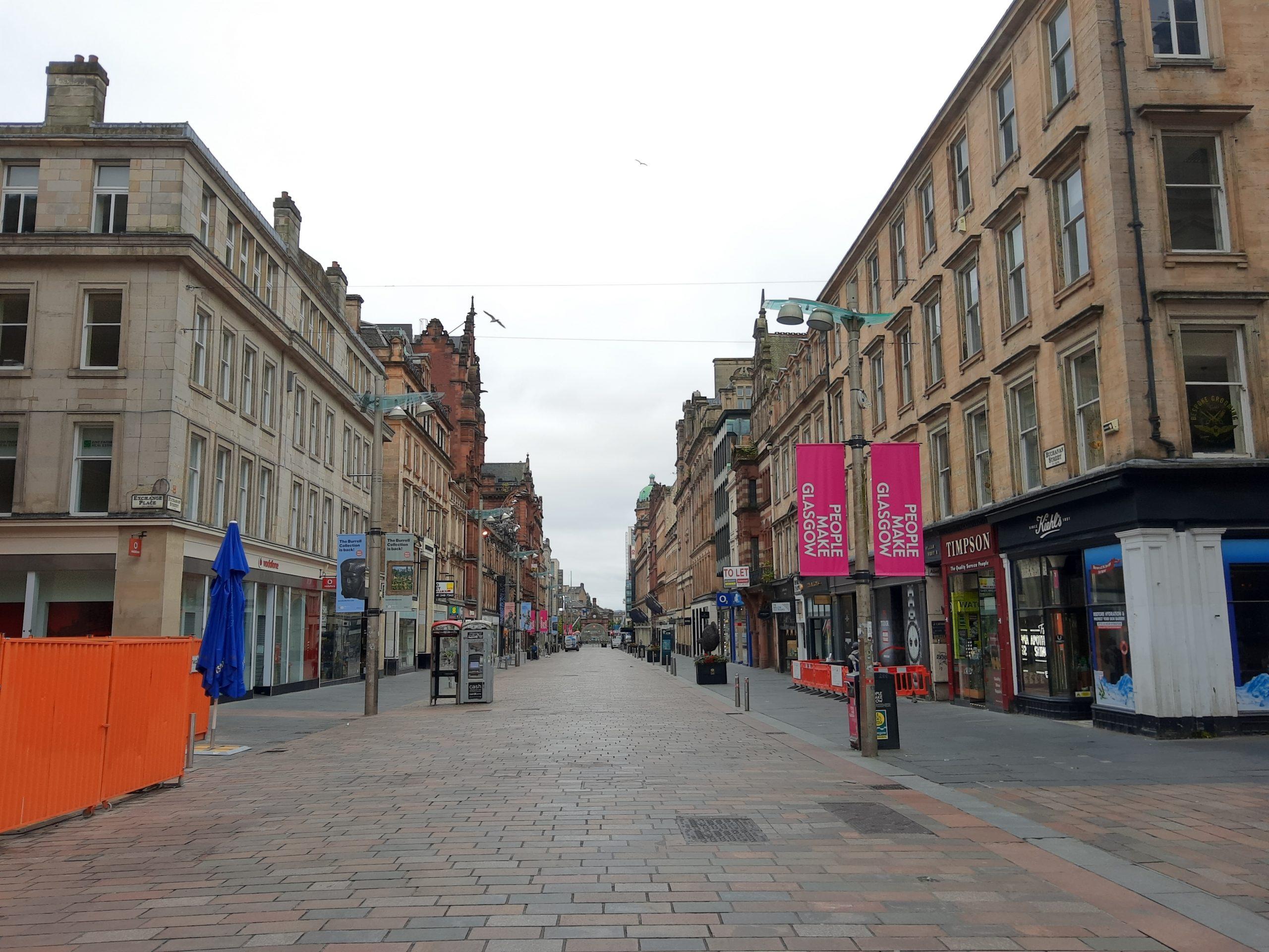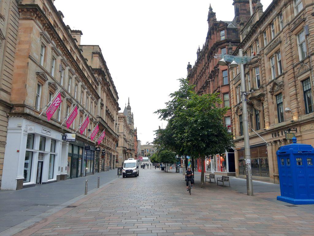 An der Glasgow Central Station haben wir unsere am Ticketautomaten unsere im Internet gekauften Fahrkarten für die weiteren Zugfahrten in Schottland abgeholt und sind dann zu Fuß durch die morgendlich menschenleeren Straßen von Glasgow zur Queen’s Street Station gelaufen.