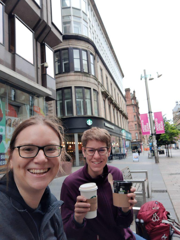 Auf dem Weg haben wir bei Starbucks Porridge und Kaffee gekauft und uns erstmal auf eine Bank gesetzt und gefrühstückt. Es sollten die letzten ruhigen Minuten dieses Vormittags sein. Die nächste Etappe von Glasgow nach Oban war ziemlich unentspannt. Fortsetzung folgt.