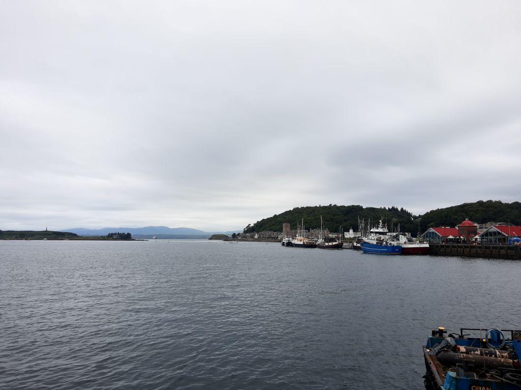Letztlich sind wir mit einer halben Stunde Verspätung im Oban angekommen und hatten sogar noch ausreichend Zeit, um bei Wetherspoons etwas zu Mittag zu essen, einen Cider zu trinken und die Aussicht auf den Hafen zu genießen, bevor wir die Fähre nach Barra bestiegen haben.