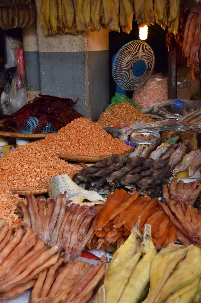 Außen rund um die Markthalle herum werden Lebensmittel aller Art von Fisch über Obst und Gemüse bis Reis verkauft. Ich war wie immer besonders von der Vielfalt der Meeresfrüchte und des Obstes begeistert.