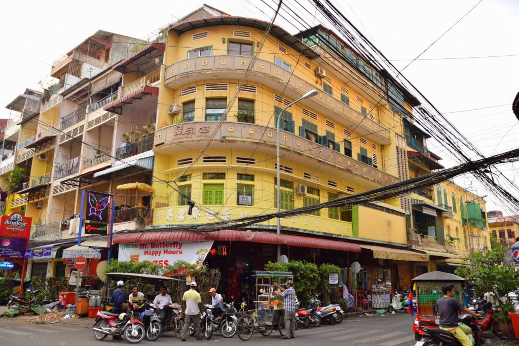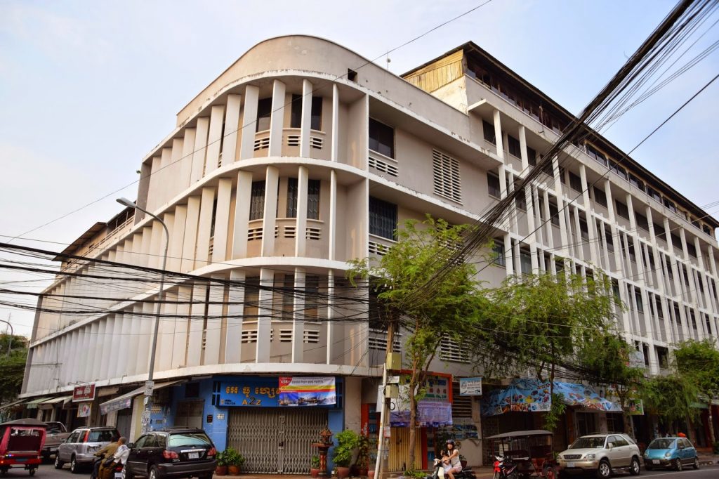 Dieses Apartment-Gebäude stammt aus den 1950er Jahren und beherbergte ursprünglich einen chinesischen Schreibwarenladen. Das Schild „Librairie Sy Cai“ ist noch vorhanden.