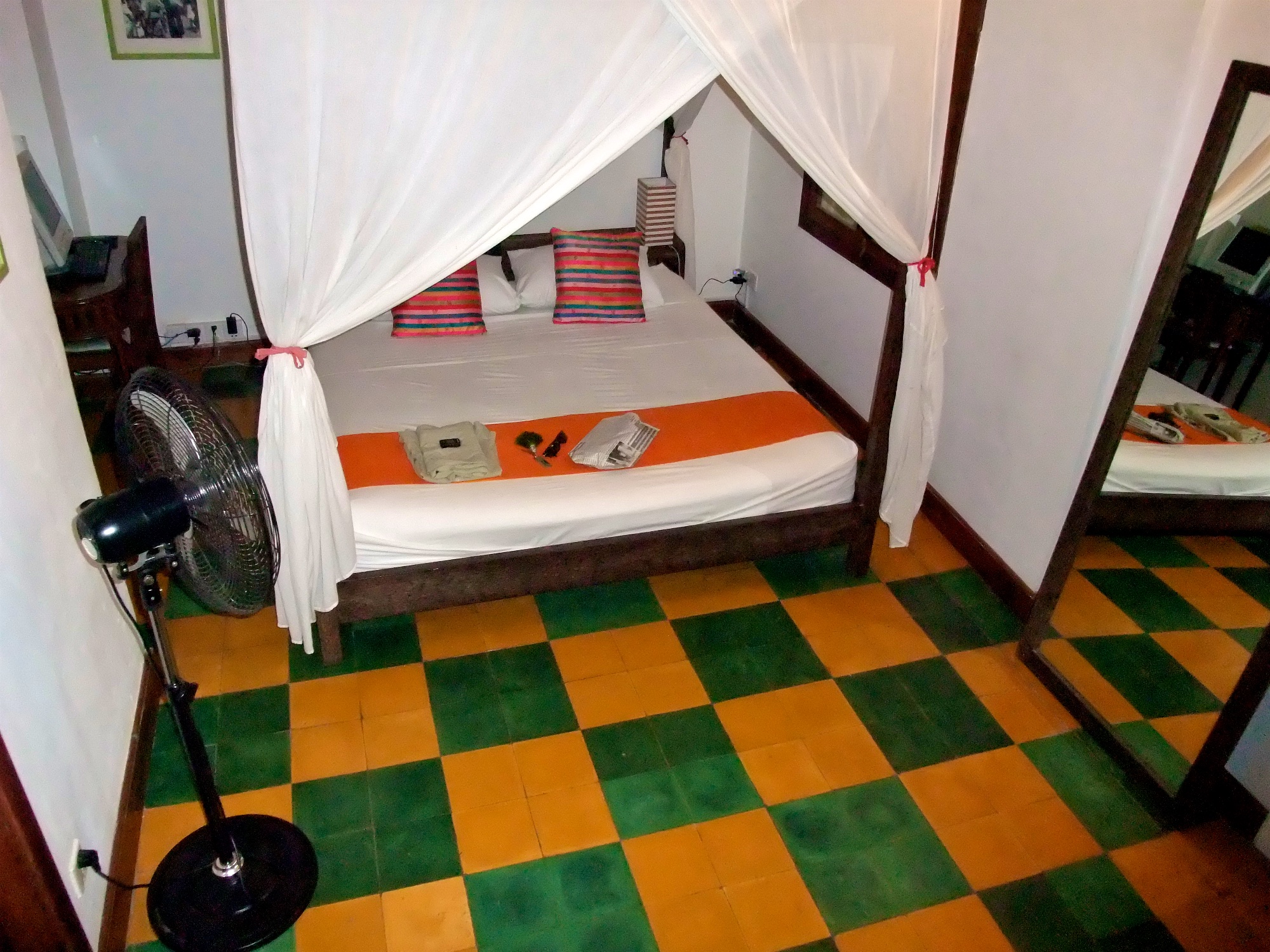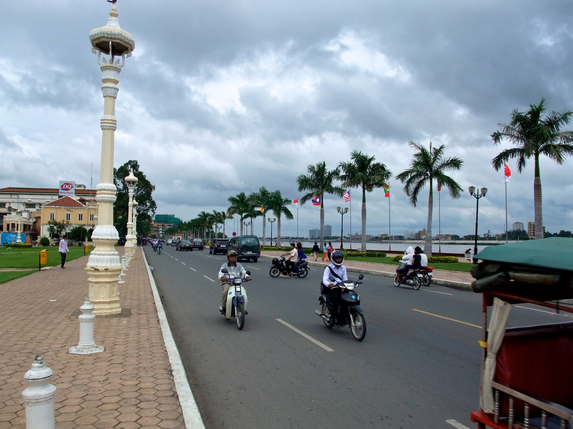 Am letzten Tag meiner Reise habe ich es mir in Phnom Penh gut gehen lassen. Nachdem ich morgens von meinem Hotel hinter dem Royal Palace entlang und vorbei am National Museum zur Uferpromenade am Mekong gelaufen war, habe ich erstmal eine ganze Weile in der sehr gemütlichen Lounge von Blue Pumpkin am Sisowath Quay verbracht und meinen Blog weiter geschrieben.