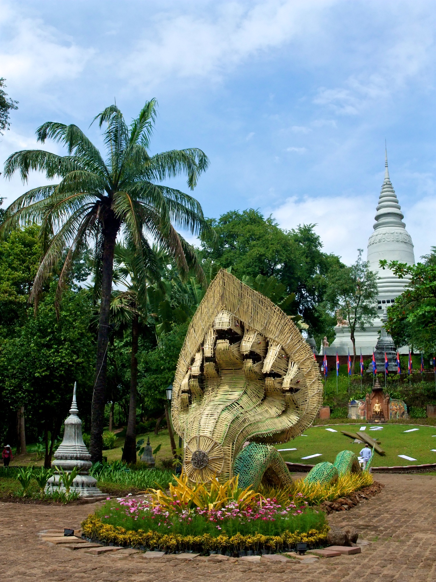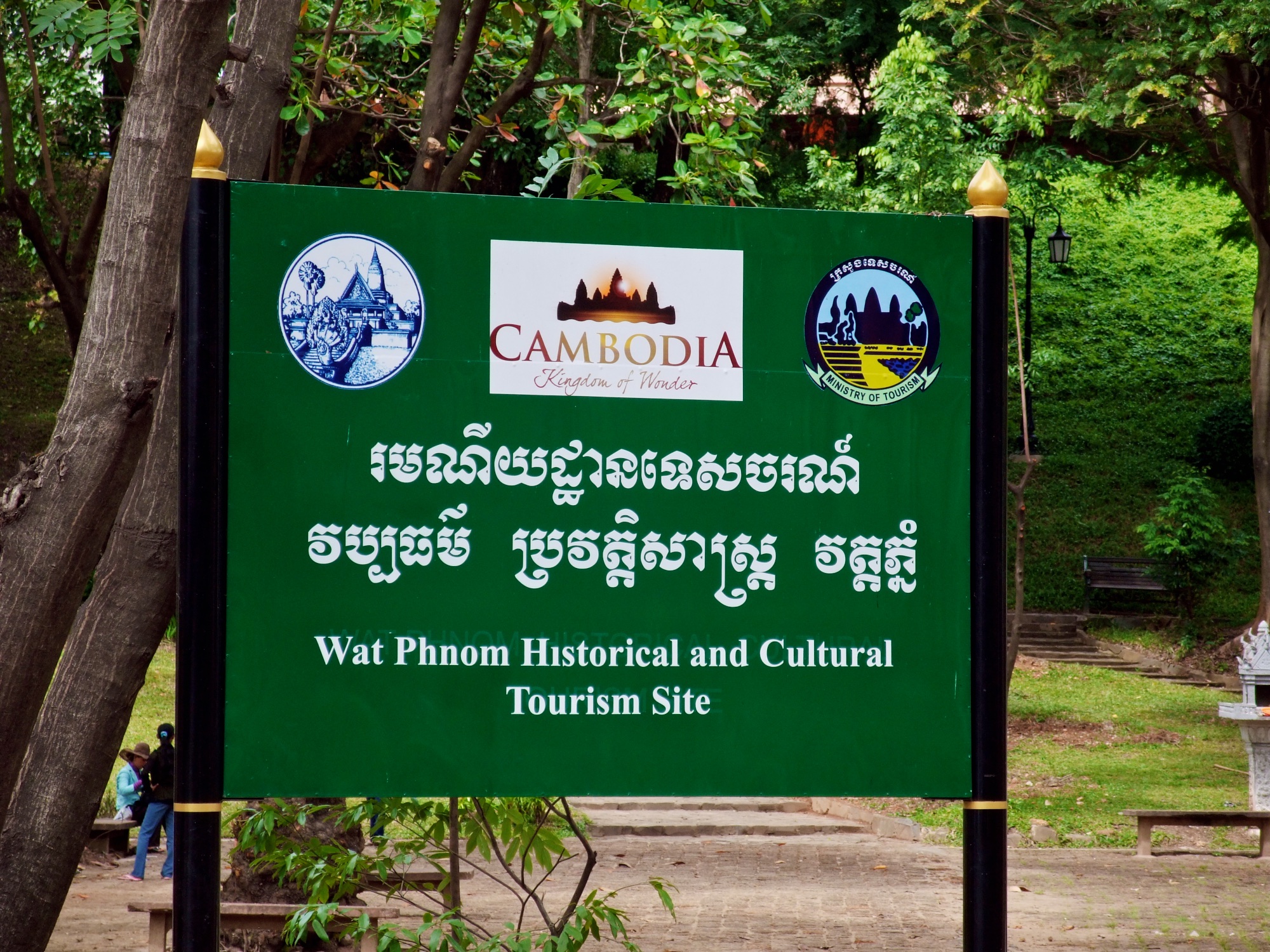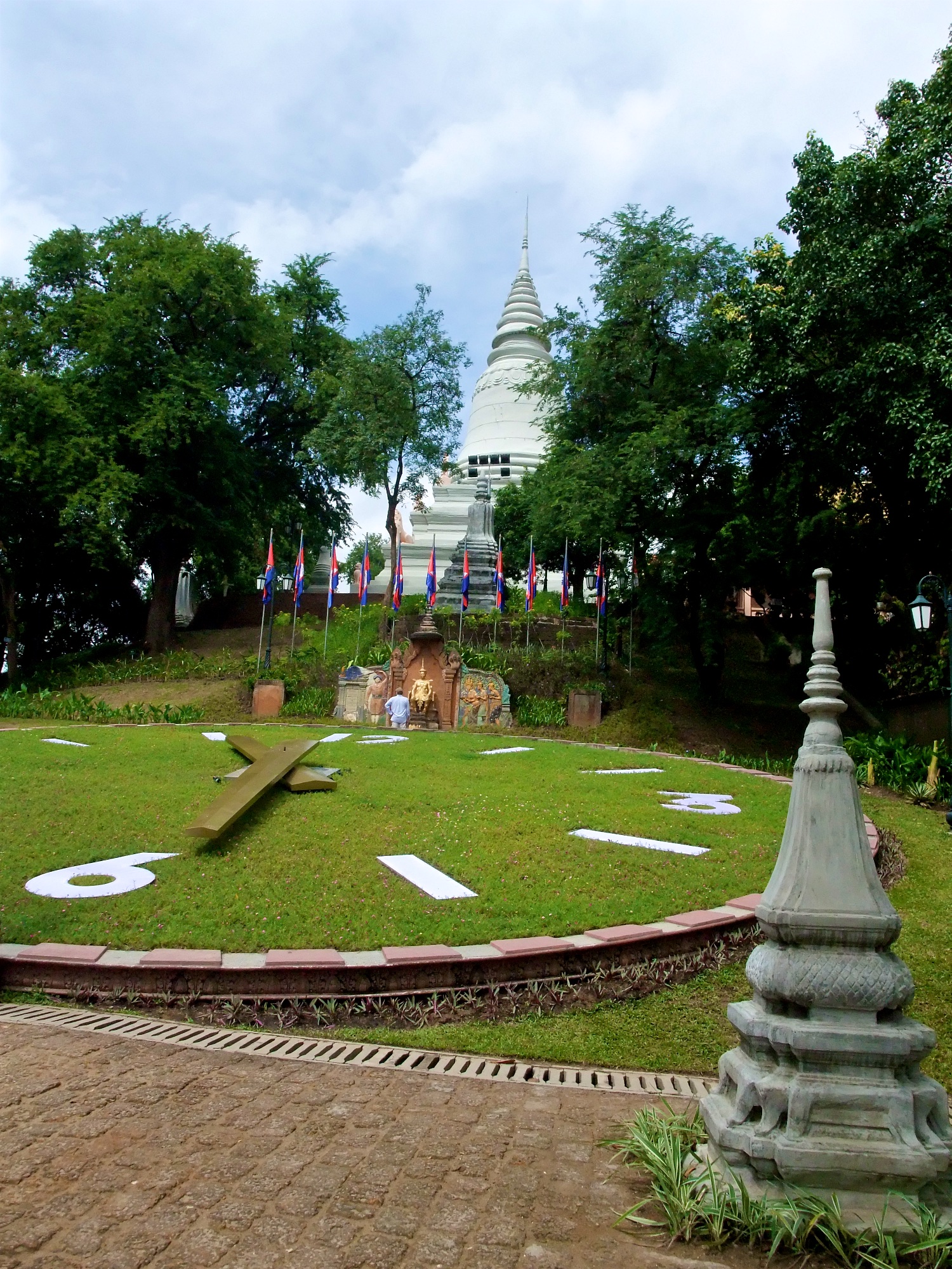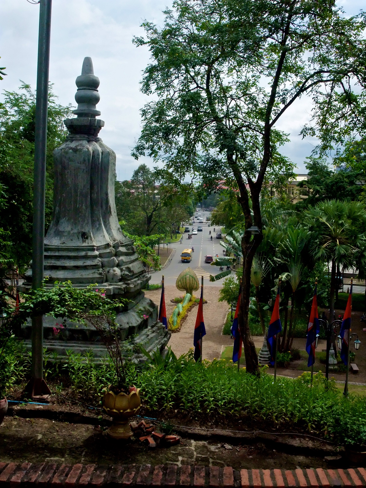 Danach bin ich weiter den Sisowath Quay entlang gelaufen, bis ich etwa auf Höhe des Post Office war. Dort ist auch ein Laden von Artisan d’Angkor, wo ich mir selbst dann noch ein Souvenir gekauft habe. Von dort wollte ich eigentlich sofort zum Mittasgessen bei Romdeng, konnte mir ein bisschen Sightseeing in Form eines Besuchs des Wat Phnom dann aber doch nicht verkneifen.