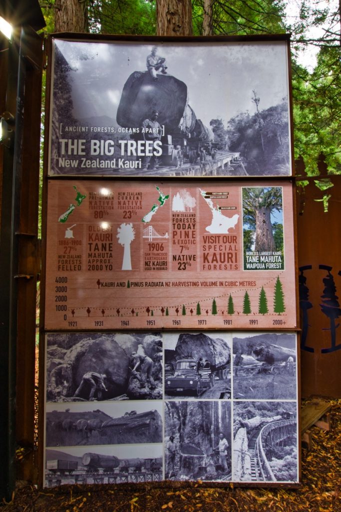 Auf den Plattformen waren jeweils Informationstafeln angebracht, sodass man beim Rundgang auf dem Treewalk auch noch einiges über den Redwood Forest von Rotorua und die Forstwirtschaft in Neuseeland lernen konnte. Die heimischen Baumarten in Neuseeland wachsen sehr langsam und bereits 1897 hat die Regierung von Neuseeland daher damit begonnen „exotische“ Baumarten anpflanzen zu lassen, um den Holzbedarf zu decken. Die Redwood-Bäume im Whakarewarewa-Wald in Rotorua wurden im Jahr 1901 angepflanzt. Insgesamt wurden im Whakarewarewa-Wald noch 70 Baumarten gepflanzt, u.a. australische Eukalyptusbäume, japanische Zedern, mexikanische Zypressen, Akazien und Monterey-Kiefern. Heute ist die Forstwirtschaft eine der bedeutendsten Exportindustrien von Neuseeland.