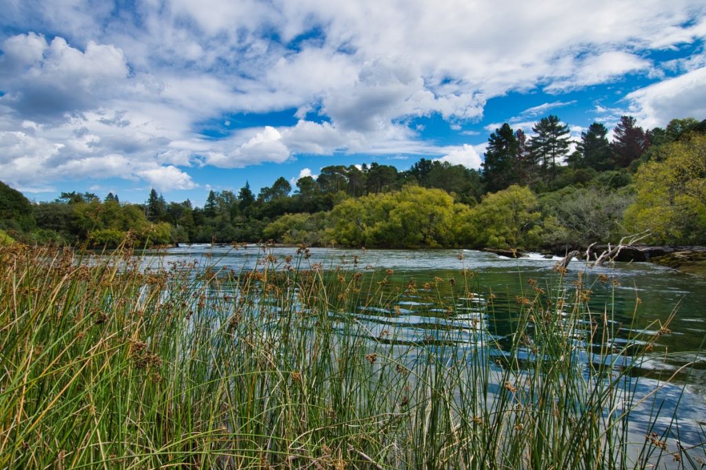Nur wenige hundert Meter entfernt, oberhalb der Stromschnelle zeigt sich der Waikato River von einer ganz anderen, viel ruhigeren Seite.