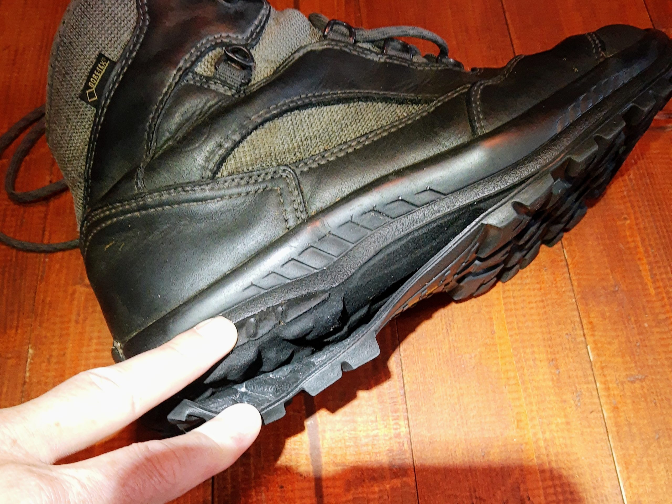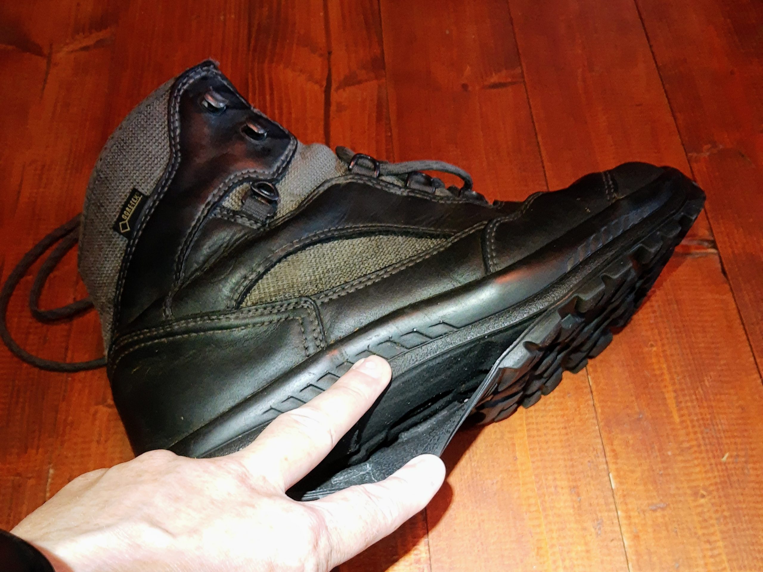 Leider habe ich mittags bemerkt, dass sich bei meinen Wanderstiefeln die Untersohle von der Zwischensohle gelöst hatte – ziemlich großflächig und auf beiden Seiten.
