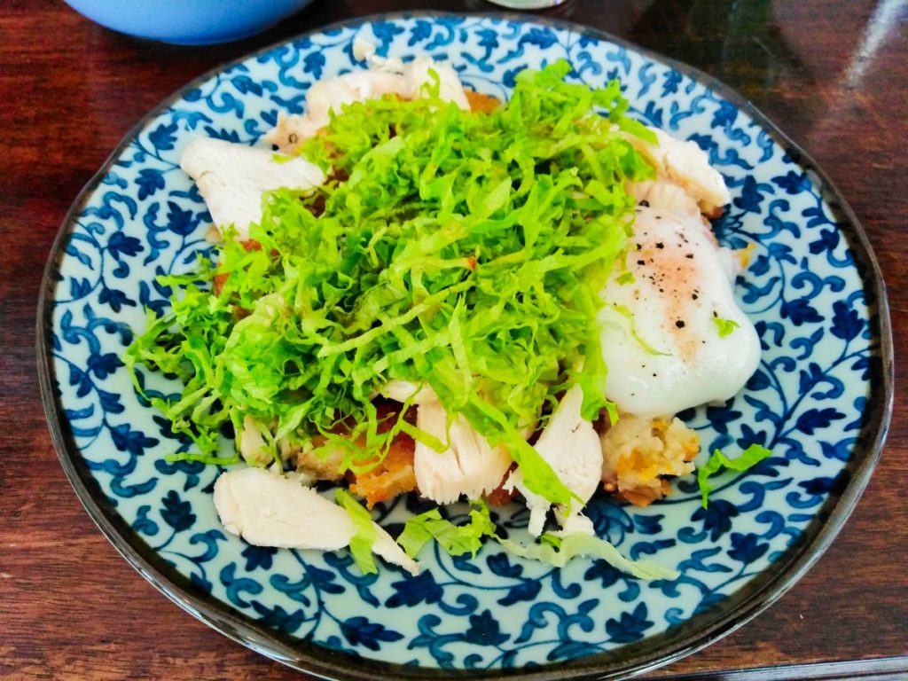 An meinem letzten Tag in Singapur musste ich um 11 Uhr aus dem Hotel auschecken. Vorher habe ich aber noch das inkludierte Frühstück genossen. Dieses Mal habe ich mich für „Tater-Tots with Chicken and Sous-Vide Eggs“ entschieden – eine ziemlich seltsame Kombination.