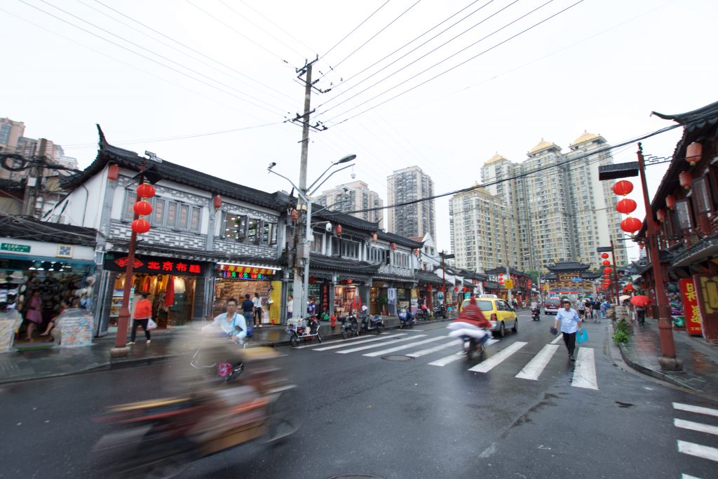 Vom Chenxiangge Kloster ging es hinein in die kleinen Gassen der Altstadt von Shanghai. Ich hatte den Eindruck, dass in Shanghai nicht alles besser ist als in Peking, aber das zumindest nicht alles so unfertig wirkt. In Peking wurde gefühlt an jeder Straßenecke, sei es in den Hutongs, sei es Mitten in der Innenstadt in der Nähe der Wangfujing-Straße, gebaut. Und zwar nicht nur an Gebäuden, sondern auch an den Straßen. Oft sah es so aus, als sei es noch gar nicht so lange her, dass die Straßen bzw. Gehwege neu gemacht wurden, aber trotzdem bröckelte schon wieder irgendetwas. In Shanghai bröckelte zumindest an den Straßen und Gehwegen fast nichts. Vielleicht haben sie in Shanghai die besser ausgebildeten Bauarbeiter …