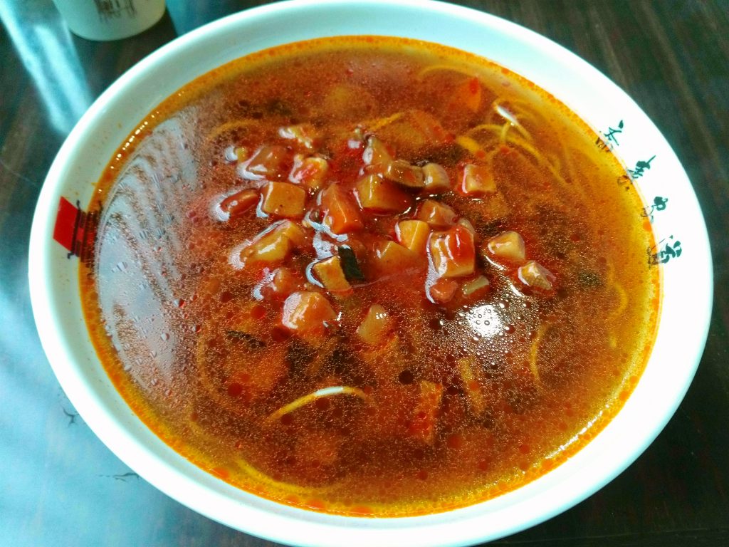 Da ich nicht gefrühstückt hatte, habe ich in einem kleinen vegetarischen Restaurant im Tempel zu Mittag gegessen, bevor ich weitergelaufen bin. Es gab auch eine englische Speisekarte und ich habe mich für Chili-Nudelsuppe entschieden. Dazu gab’s einen Milchtee. Die Suppe war deutlich weniger scharf, als ich es erwartet hatte und sehr lecker.