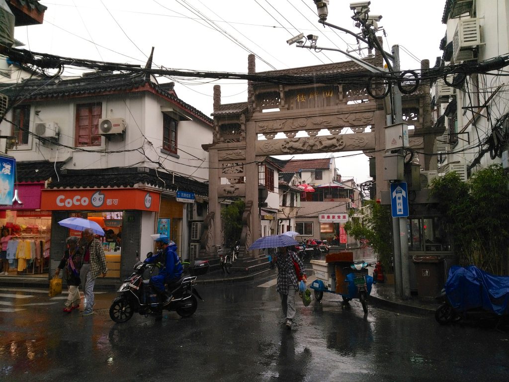 Als ich das Hotel verließ bemerkte ich leider, dass das Wetter seit dem Vorabend nicht besser geworden war. Es regnete immer noch oder schon wieder. Und ich hatte keinen Schirm eingepackt. Aber zum Glück war auf der nächsten Straßenecke vom Hotel ein kleiner Supermarkt und dort habe ich für 45 RMB einen kleinen Schirm erwerben können.