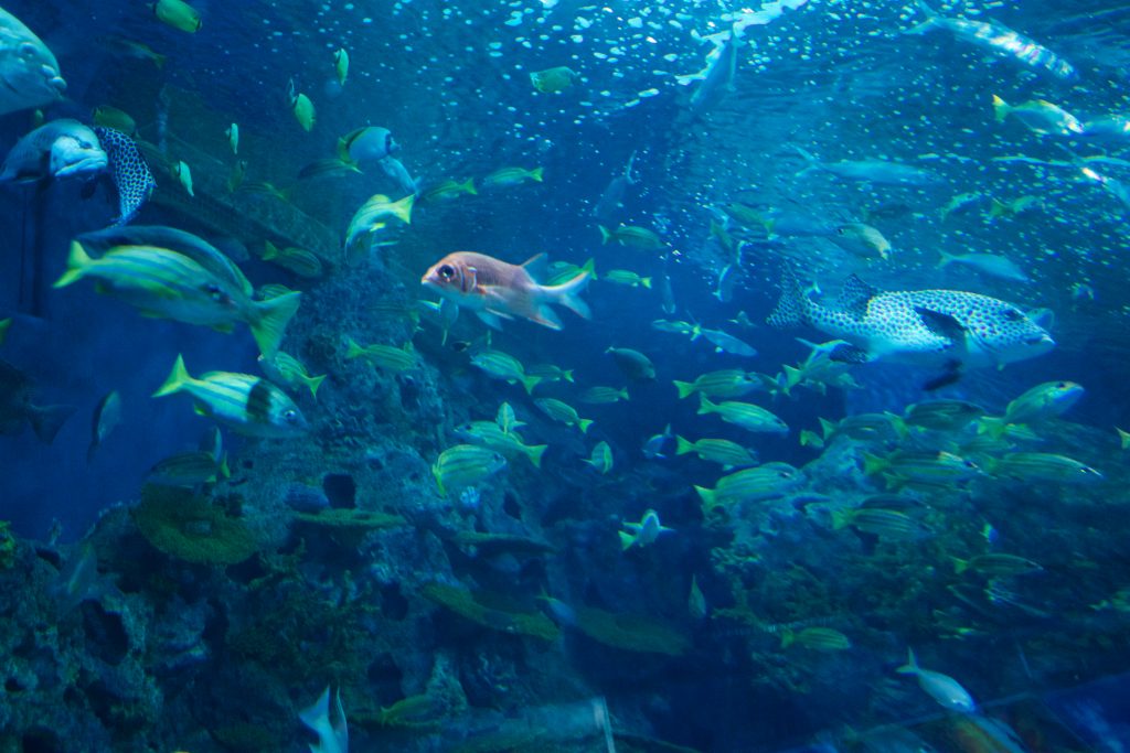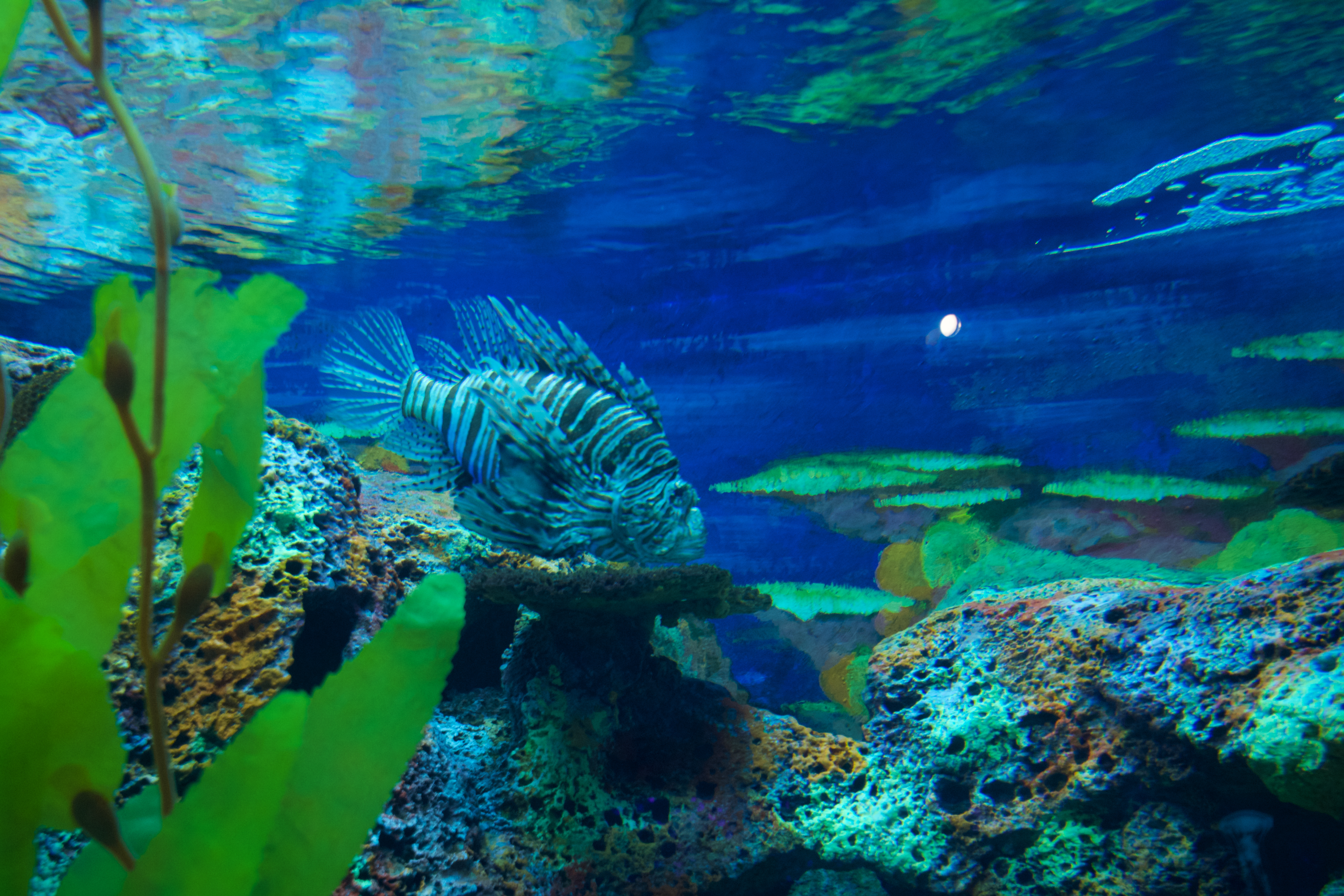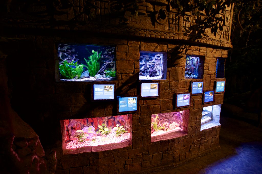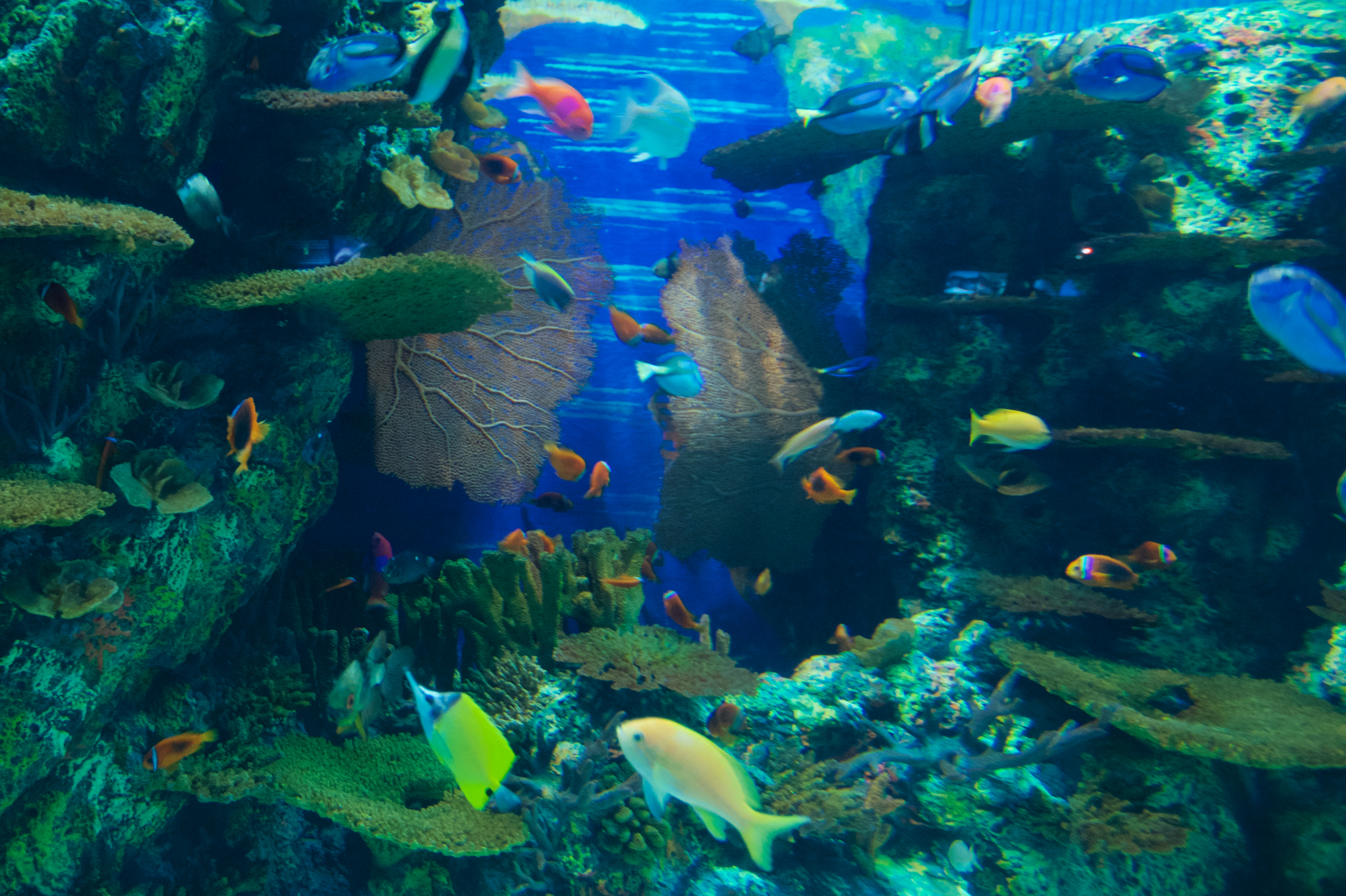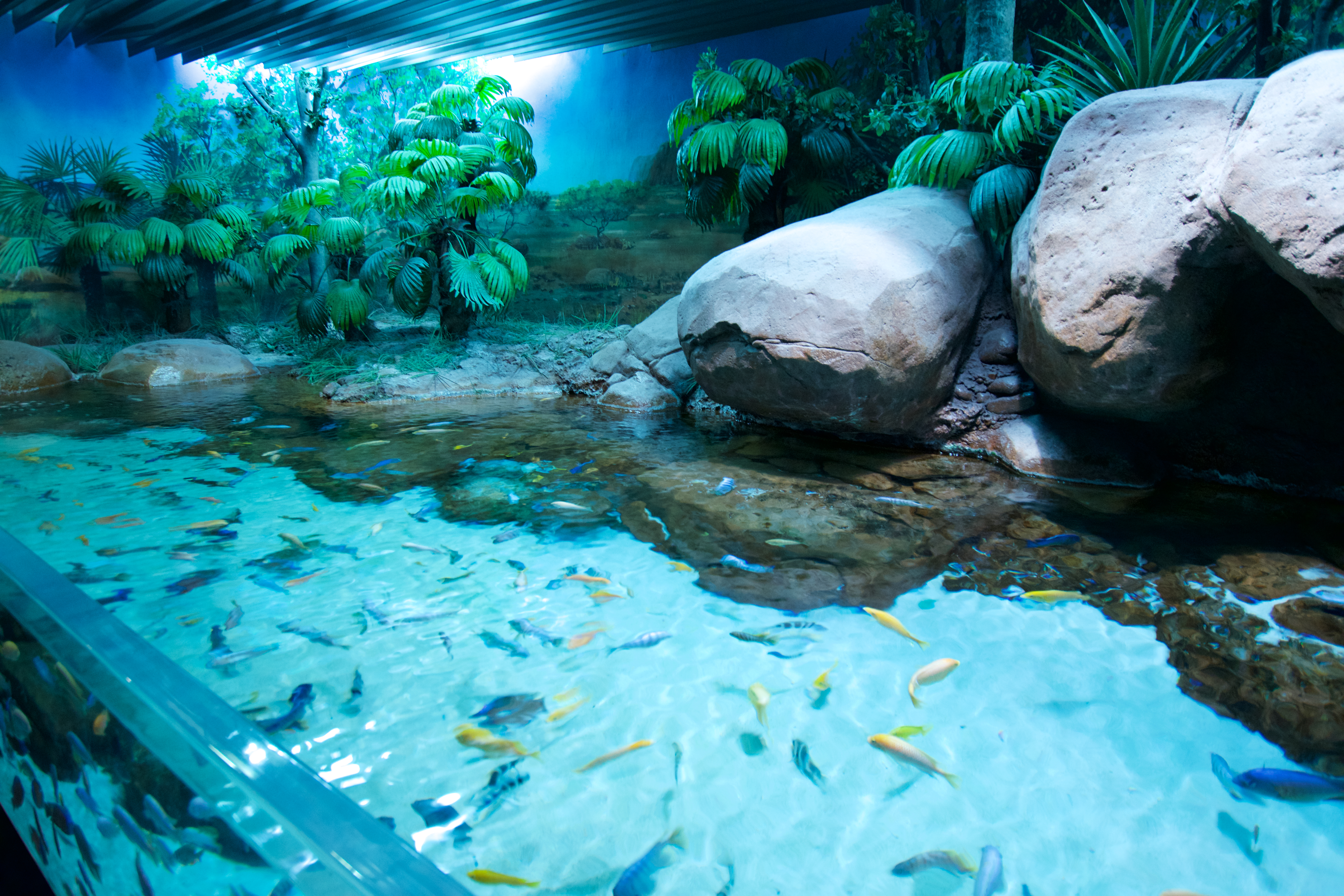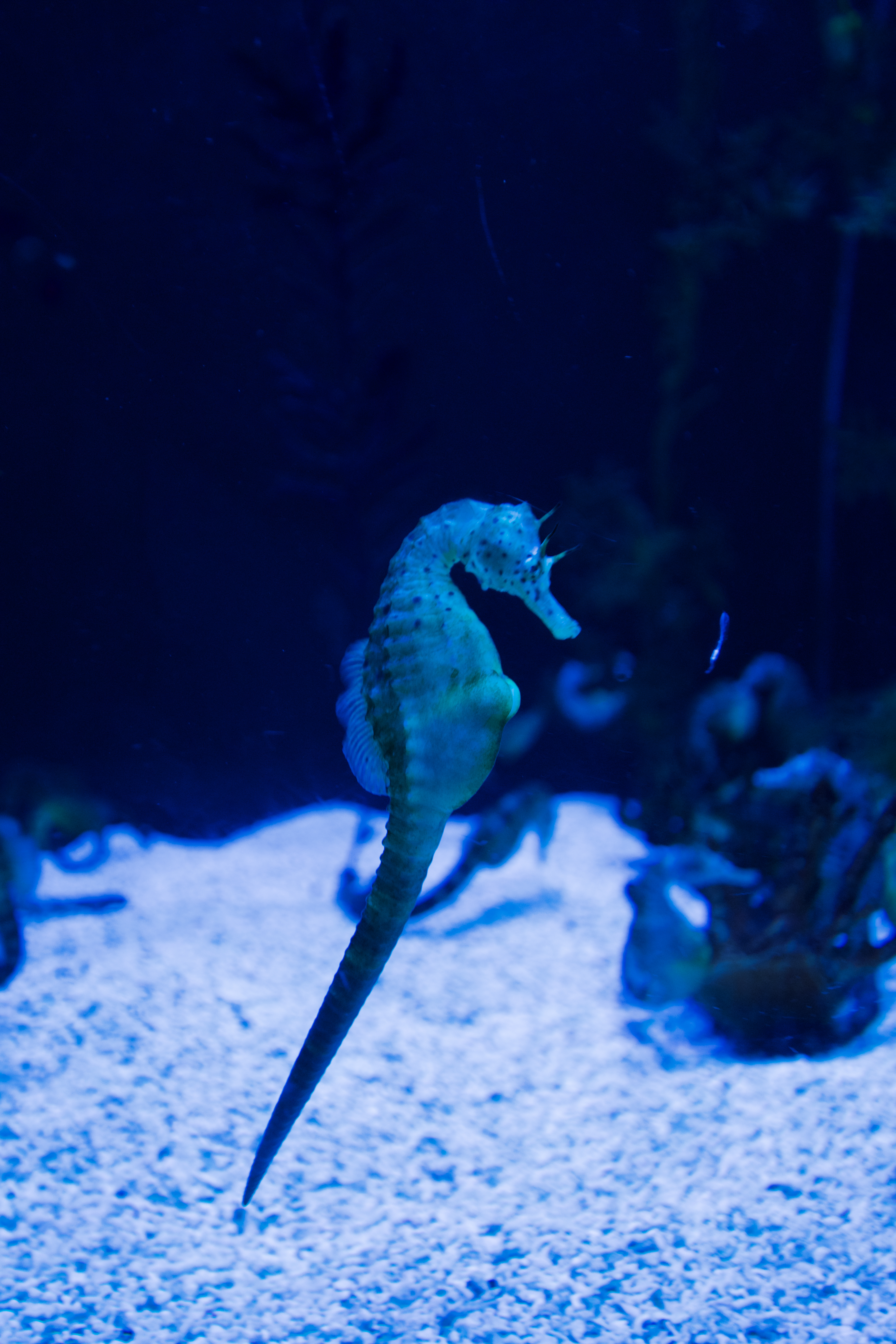 Der Ausstellung über die Haie schloss sich ein Bereich mit einer Vielzahl von großen und kleine Aquarien mit hübschen bunten Fischen aus allen Ecken dieser Erde. Die größeren Aquarien waren mehr nach oben hin offene Becken und sehr ansprechend gestaltet.