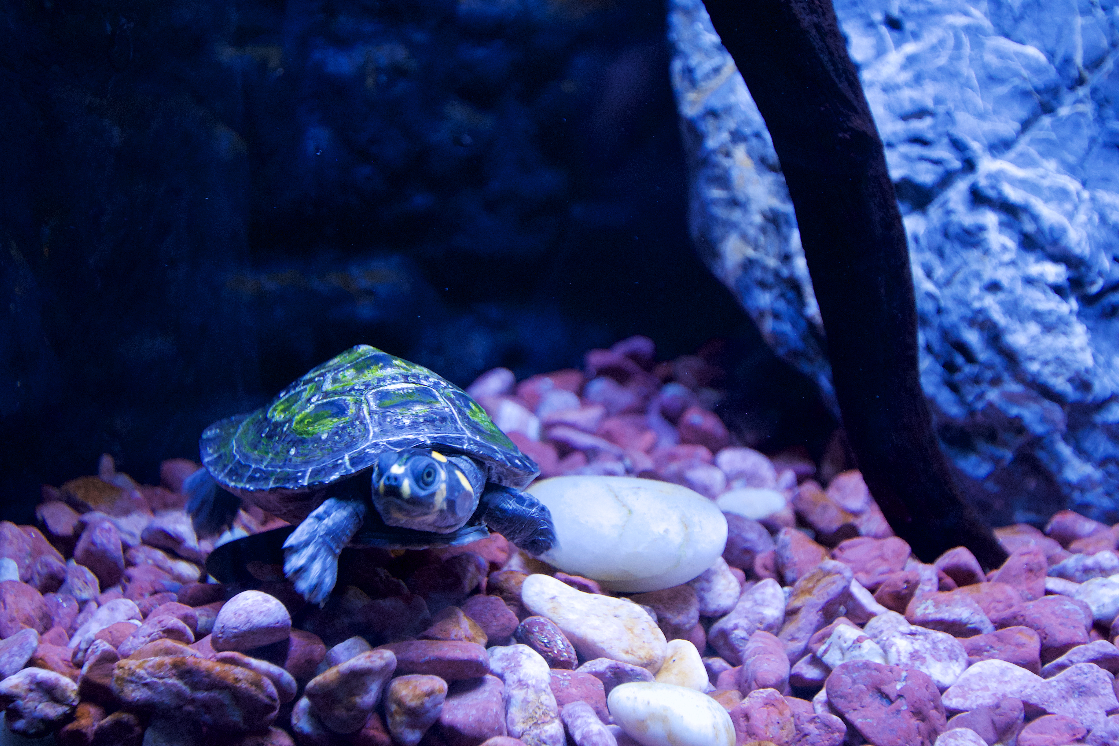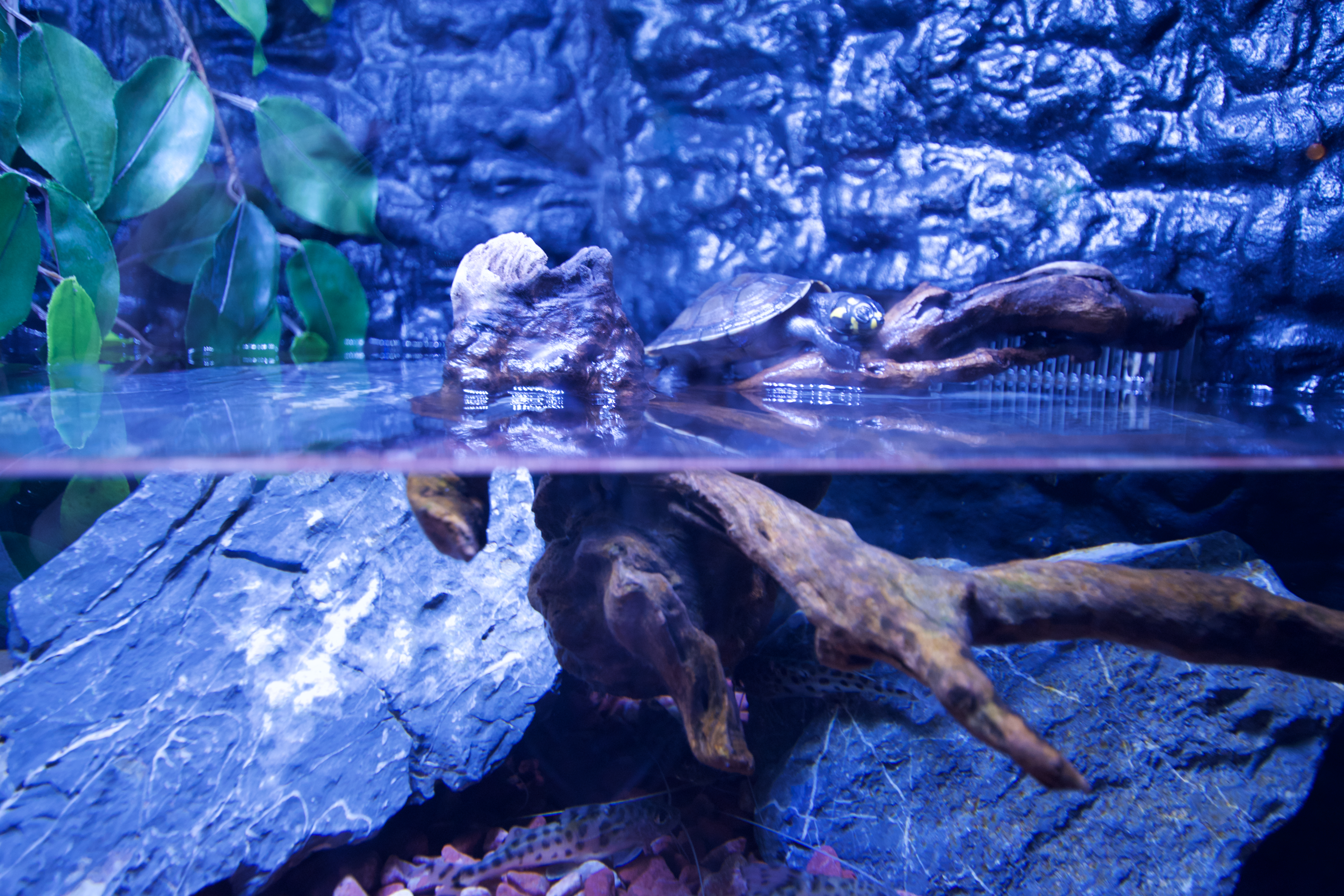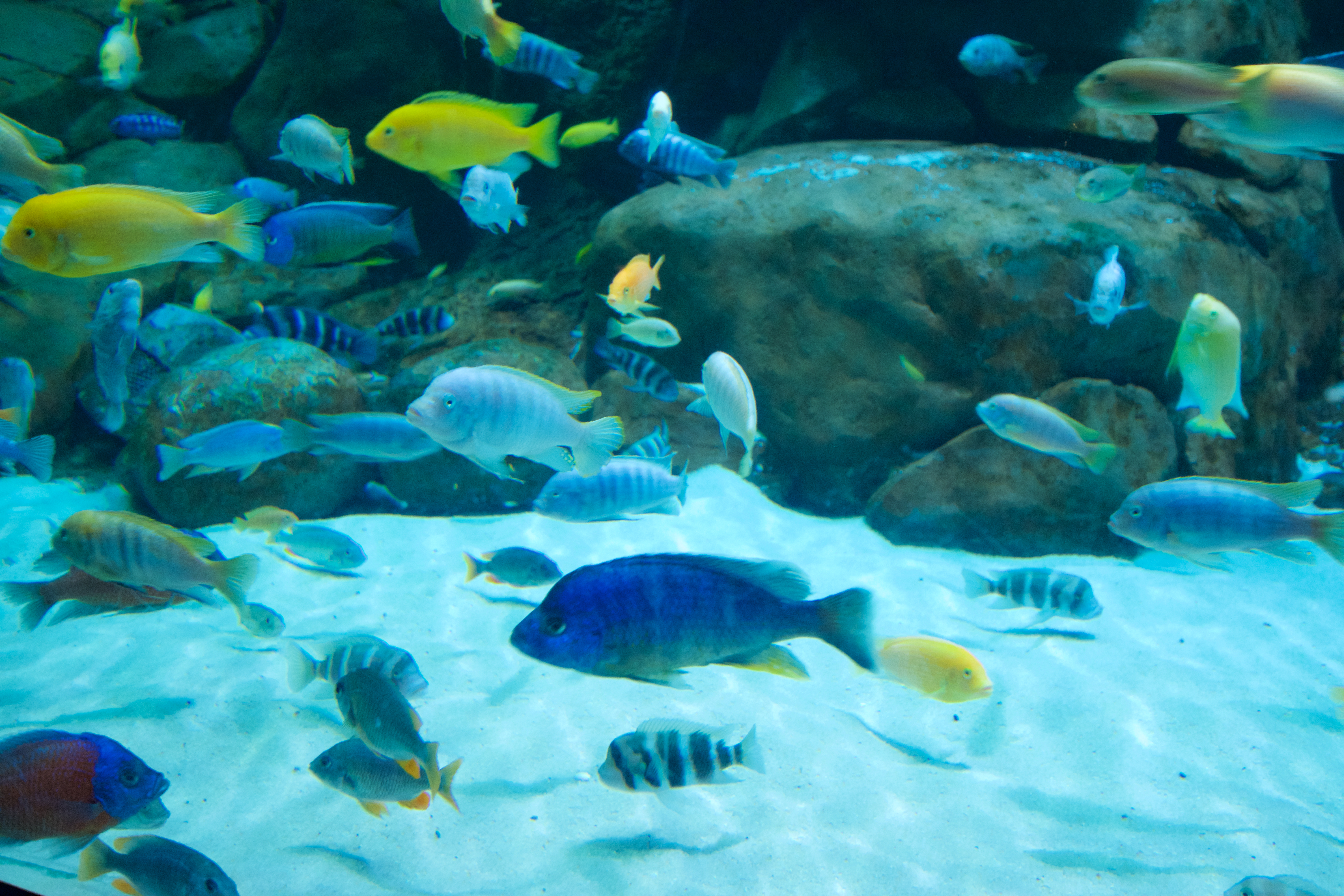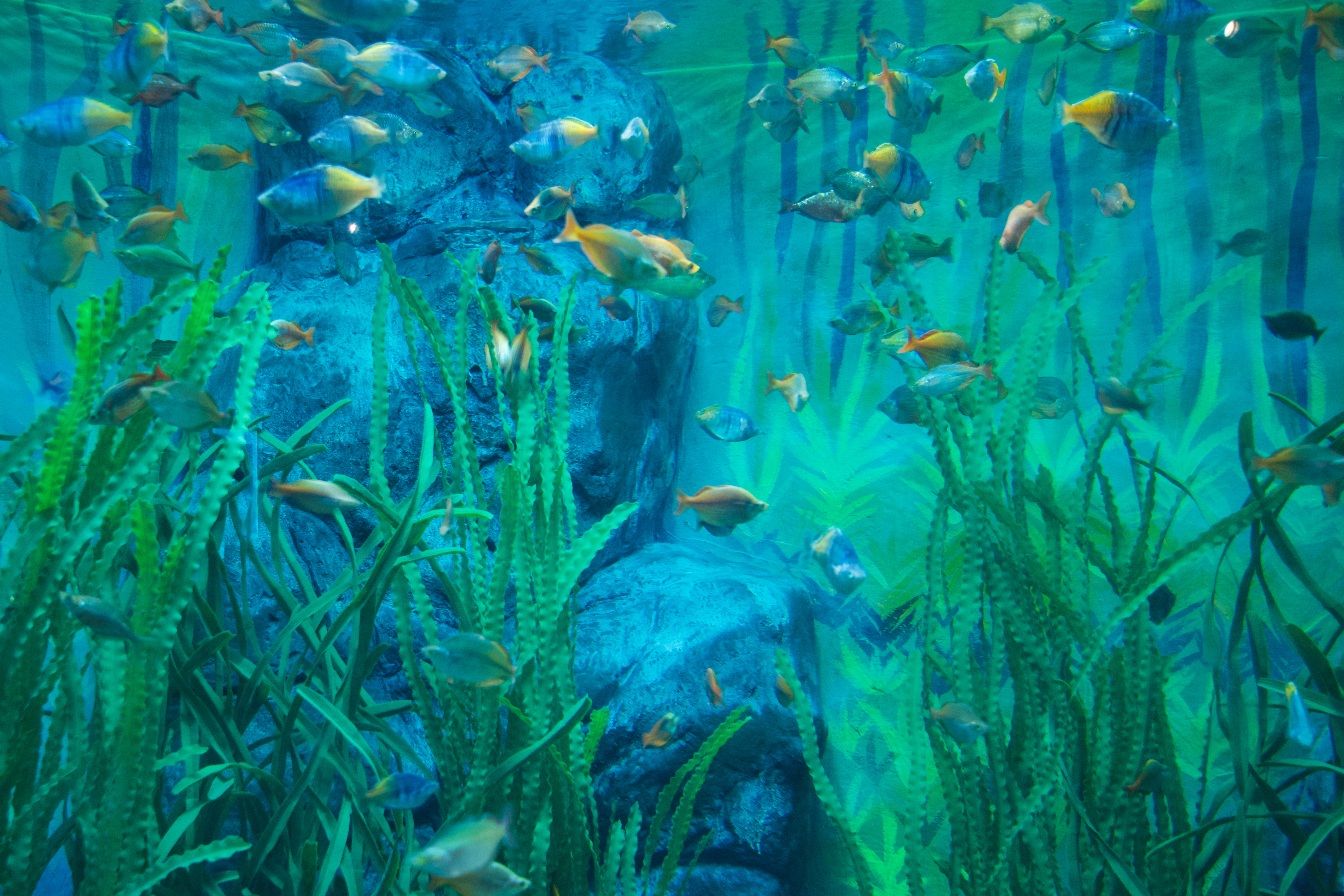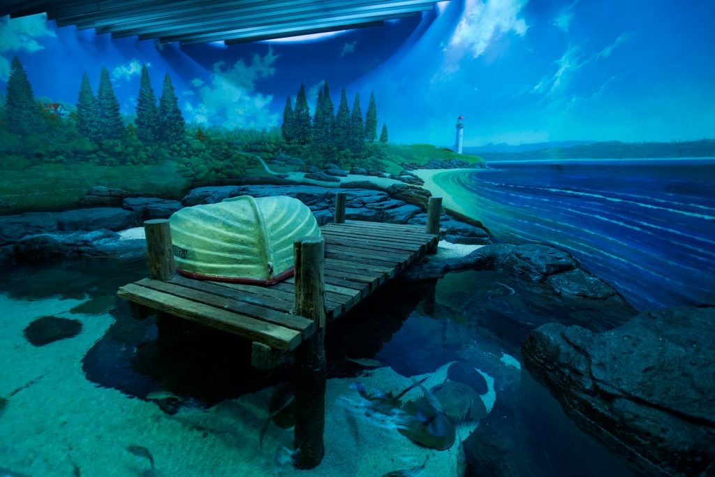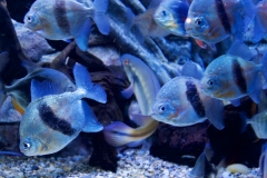 Der Ausstellung über die Haie schloss sich ein Bereich mit einer Vielzahl von großen und kleine Aquarien mit hübschen bunten Fischen aus allen Ecken dieser Erde. Die größeren Aquarien waren mehr nach oben hin offene Becken und sehr ansprechend gestaltet.