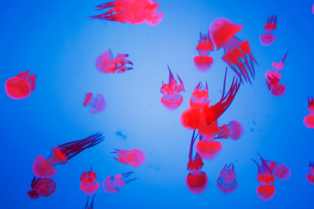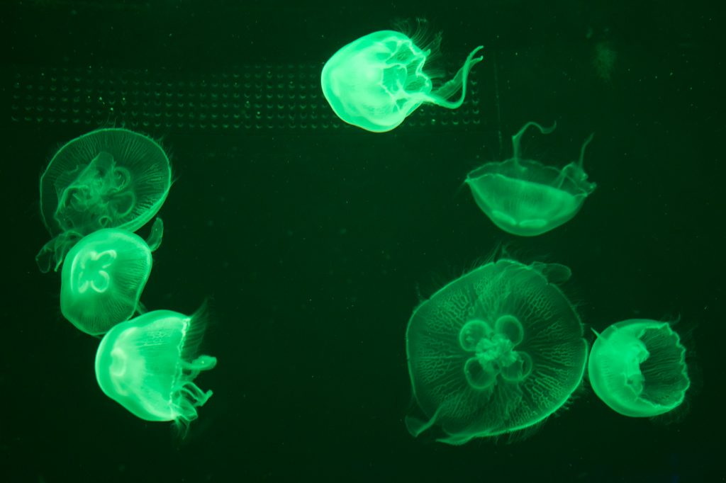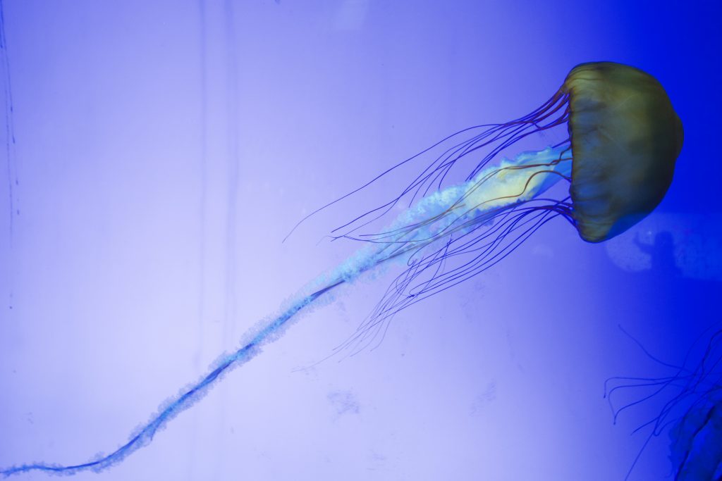 Fast schon künstlerischen Wert hatten die Becken in denen verschiedene Quallenarten gezeigt und mit bunten Farben angestrahlt und zum Leuchten gebracht wurden.