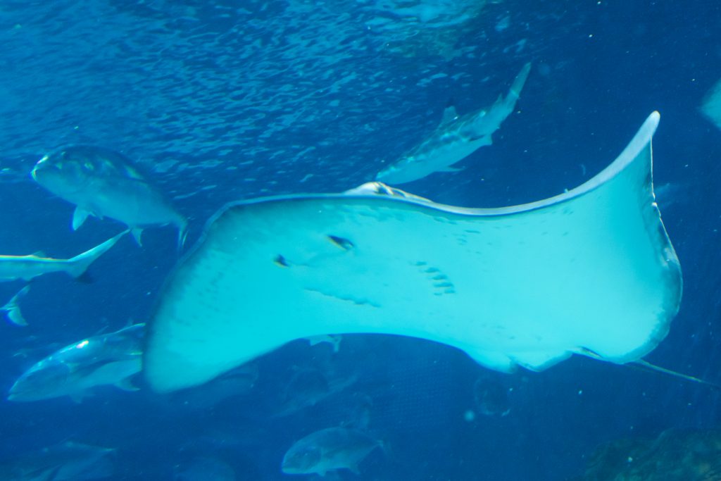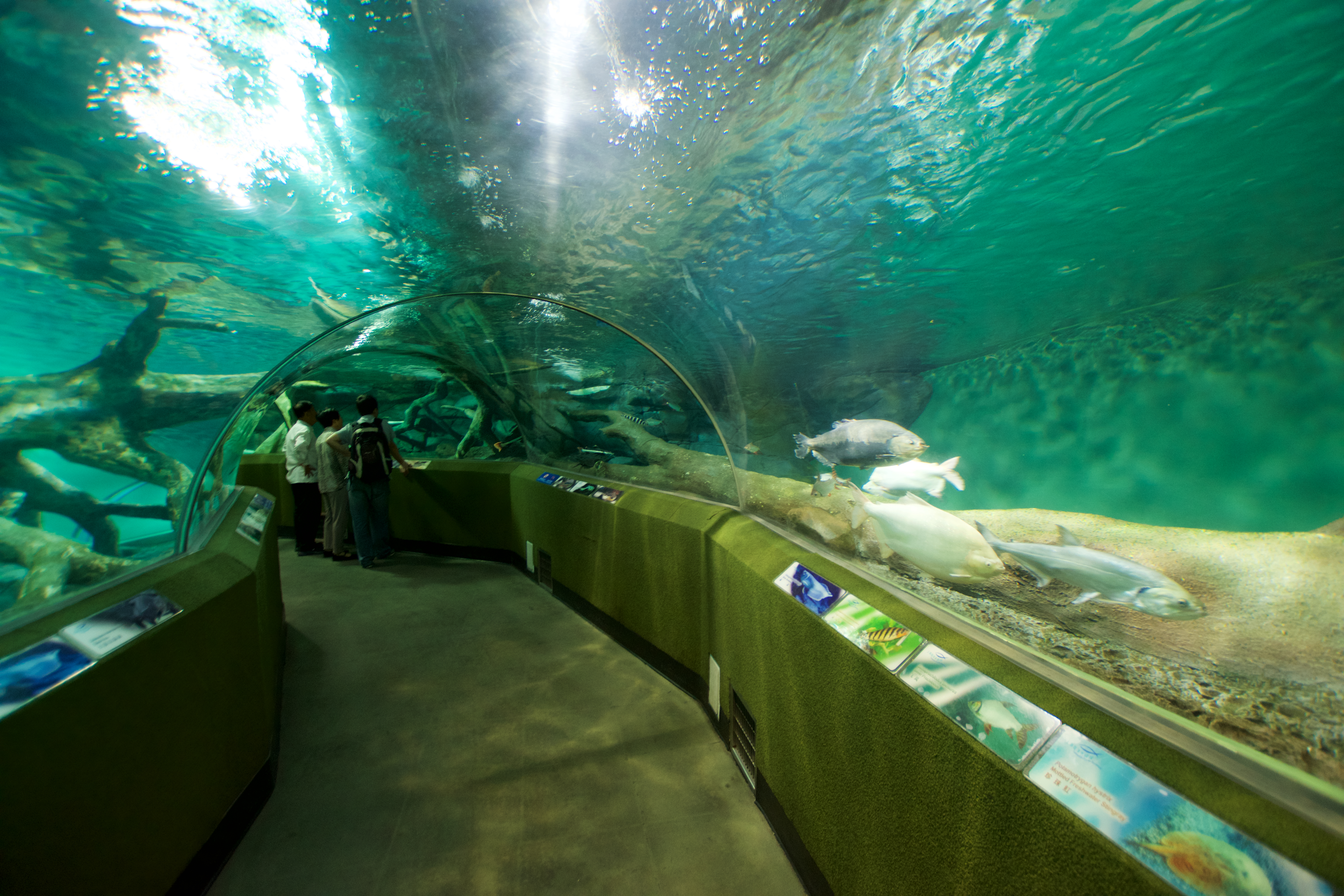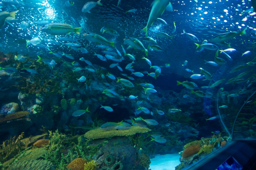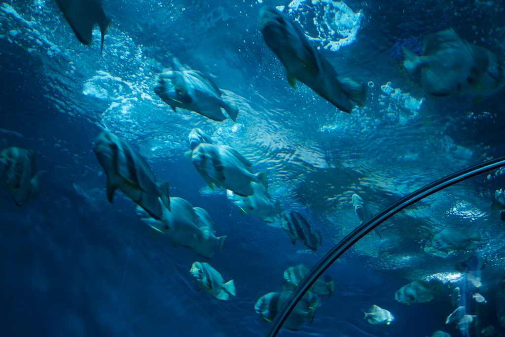Das Highlight des Besuchs war aber der Gang bzw. besser gesagt die Fahrt durch den 155m langen Glastunnel, bei dem die Fische neben und über einem her schwammen.