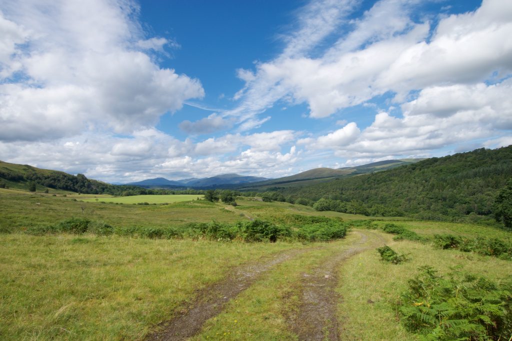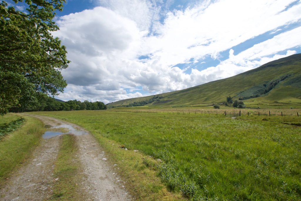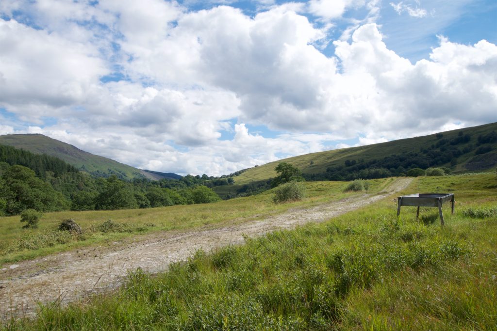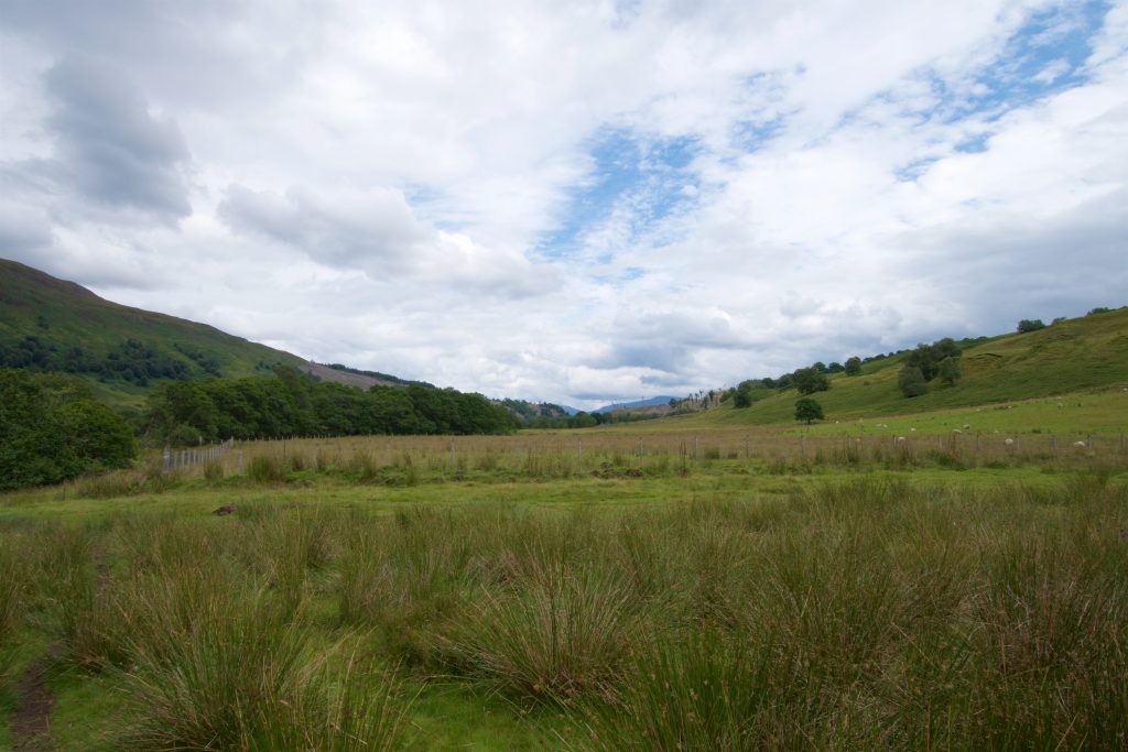 Nachdem wir wieder an den Ausgangspunkt unseres Abstechers zurückgekehrt waren, setzten wir unsere Wanderung auf dem East Highland Way fort. Kurze Zeit später zeigte sich aber wieder, dass das Guidebook nur bedingt tauglich ist. Wir kamen an eine Stelle, an der zwei Tore nebeneinander waren. Im Guidebook steht einfach nur, dass wir eine eingezäunte Wiese betreten sollten.