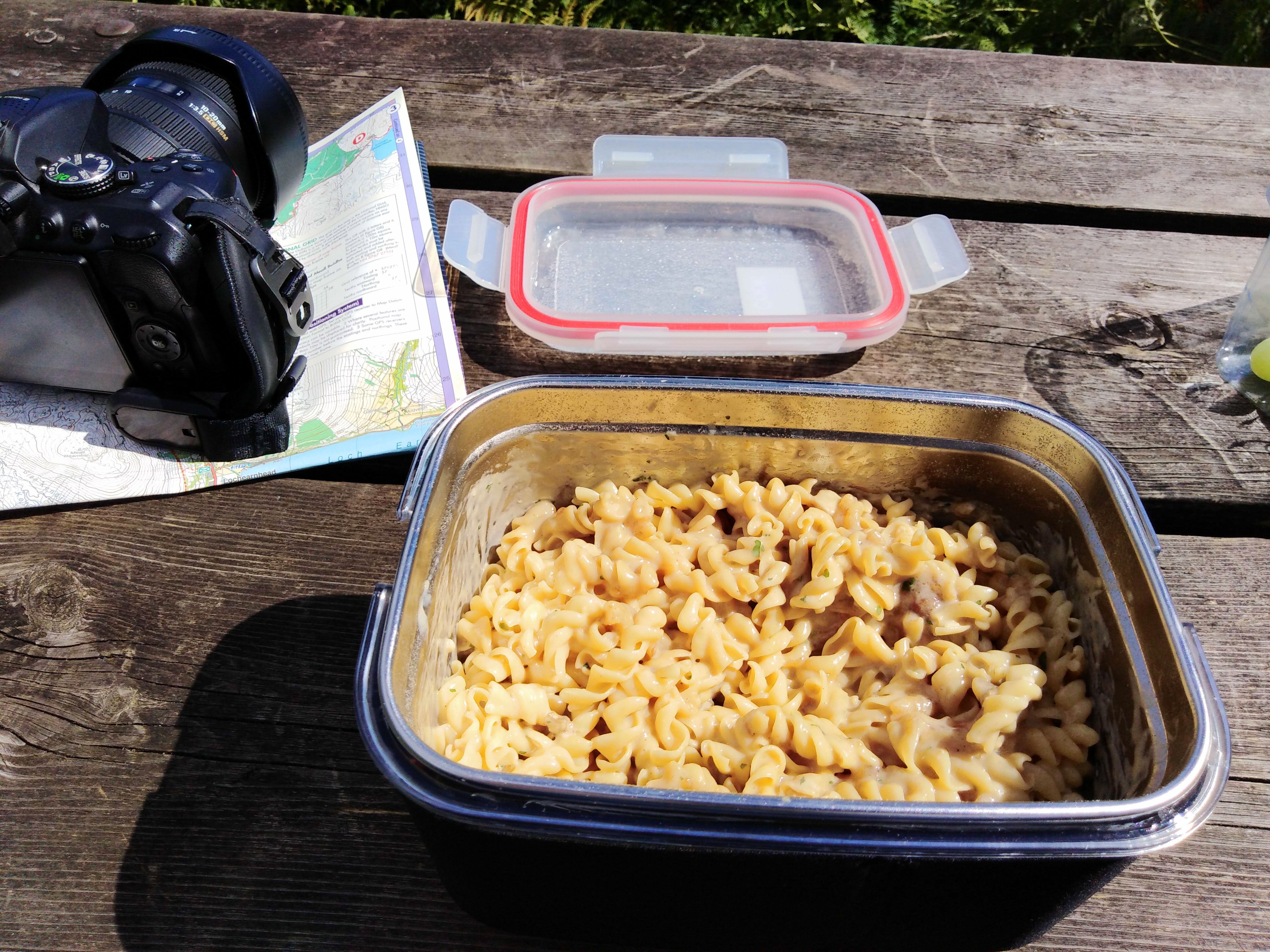 Heute kam auch wieder der Barocook zum Einsatz. Mittlerweile haben wir das System so optimiert, dass wir es tatsächlich hinbekommen, in vertretbarer Zeit eine warme Mahlzeit im Barocook zuzubereiten. Es ist zwar nicht viel, aber ein paar warme Nudeln tun auf so einer langen Wanderung schon gut.