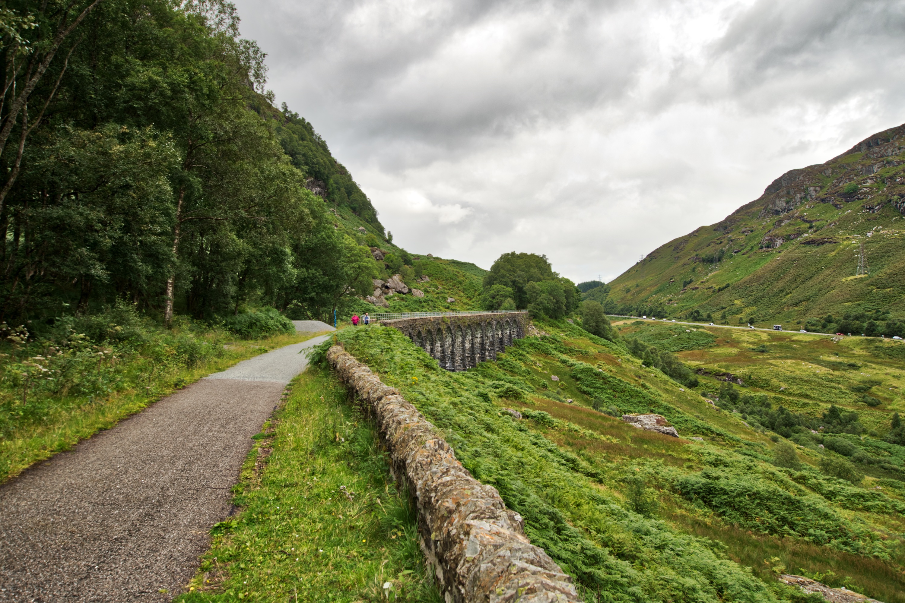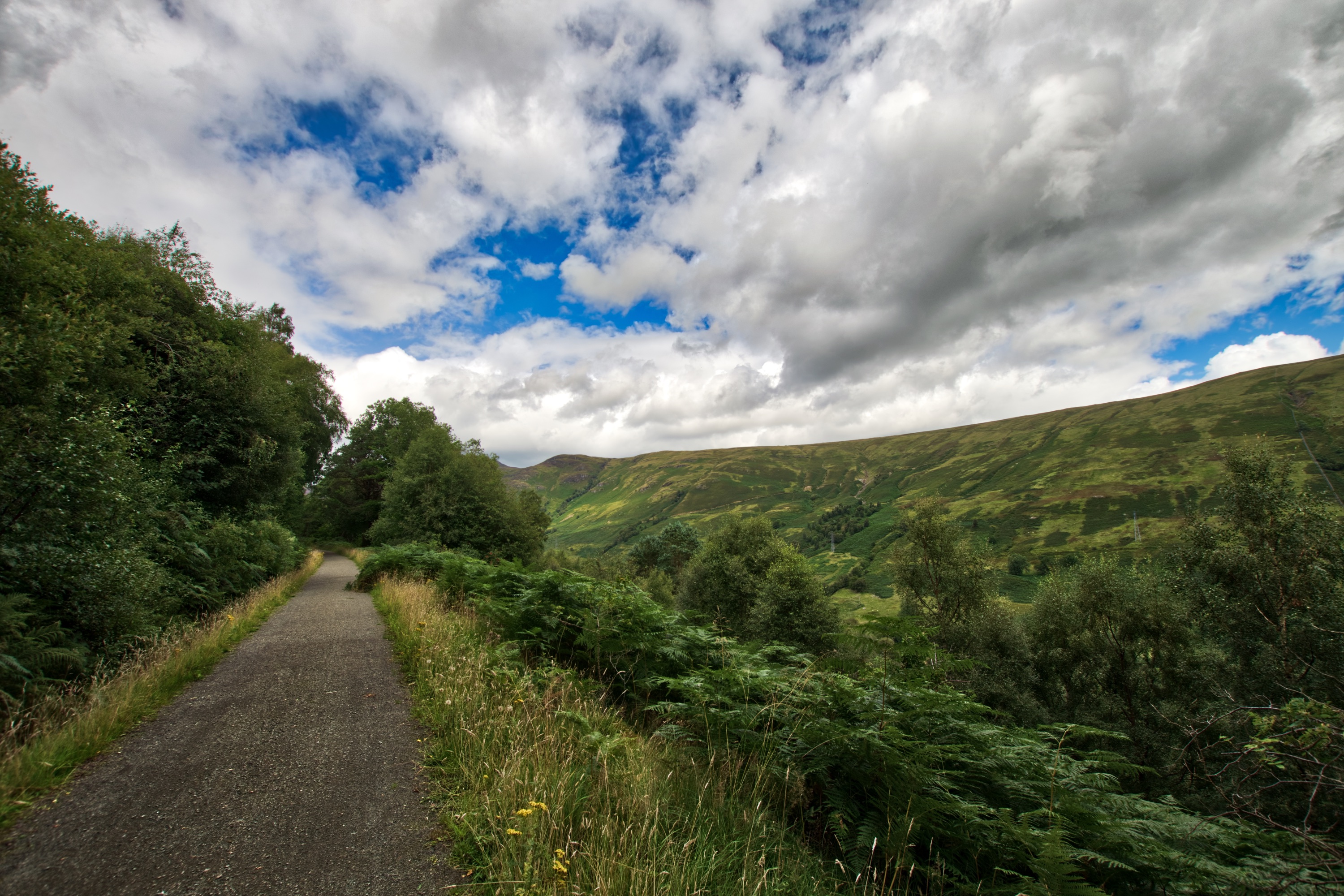 Nach etwa einer dreiviertel Stunde Pause haben wir unsere Wanderung wieder fortgesetzt, denn wir hatten noch mehr als 11 km vor uns. Der Rob Roy Way und die Cycle Route No. 7 verliefen nun, nachdem wir den Rest des Anstieges geschafft hatten, mehr oder weniger flach auf einer alten Eisenbahntrasse durch das Glen Ogle.